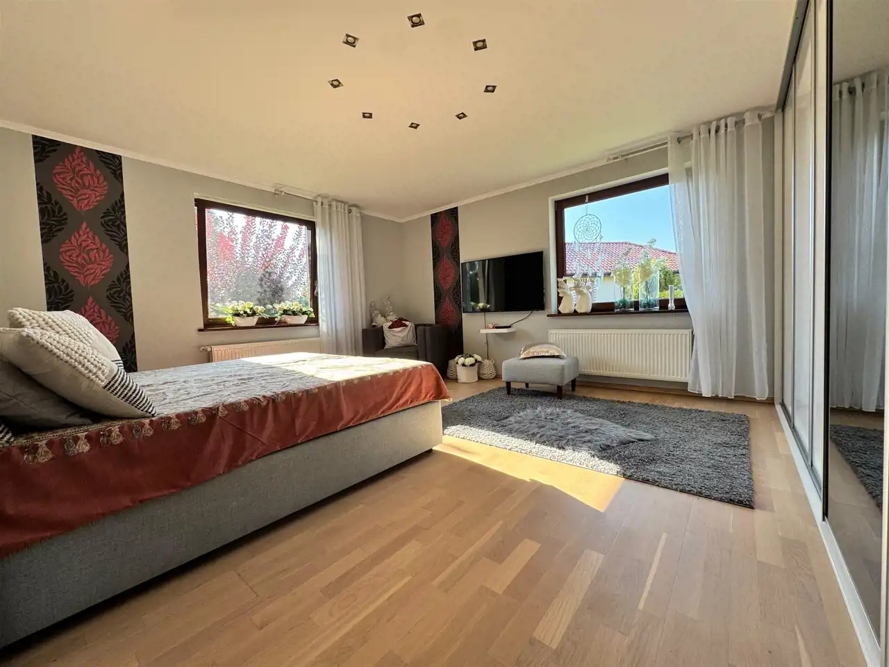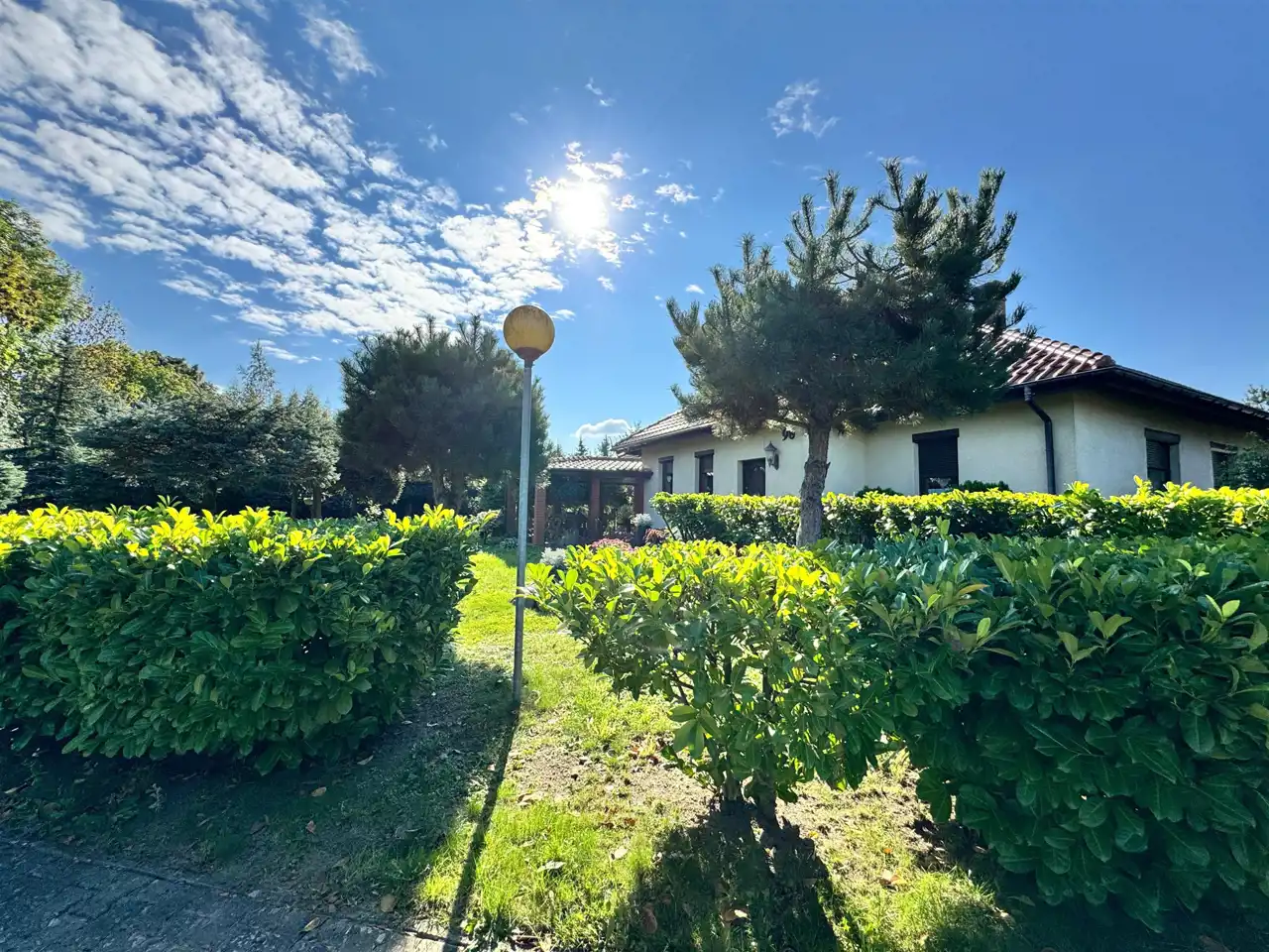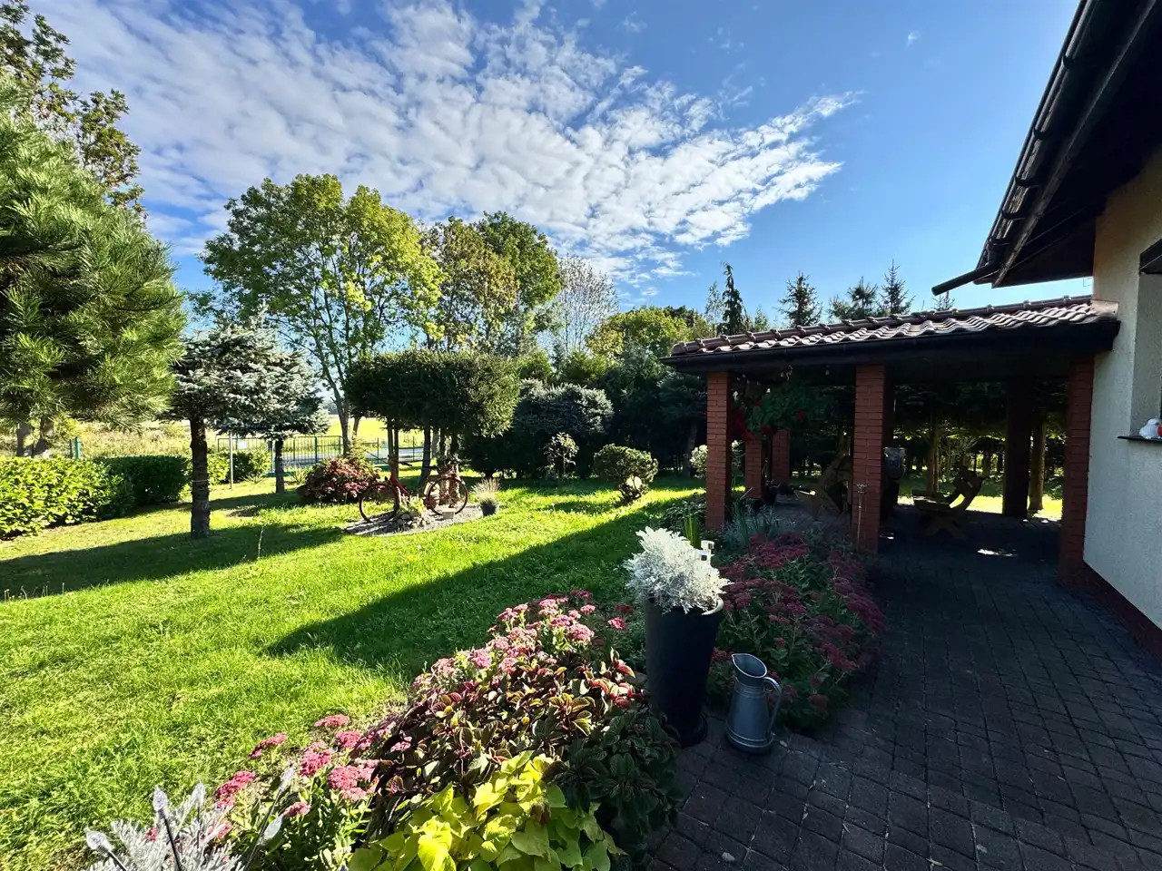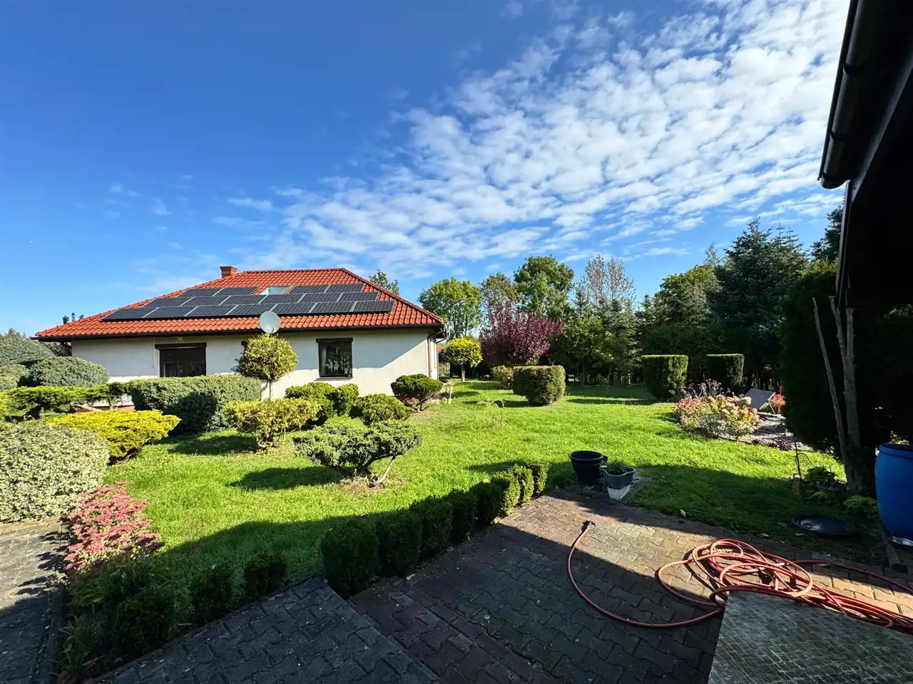 Budynek dodatkowy na działce (garażowo-gospodarczy) budowany jako garaż, obecnie zaadoptowany na mieszkalny (można przywrócić pierwotną funkcję zdejmując okna bo brama elektryczna jest zamontowana). Znajdziemy tu także przestrzeń na antresoli jako cześć sypialna. Dodatkowo jest łazienka i kuchnia oraz piwnica w której jest umieszczony cały system ogrzewania i filtry.