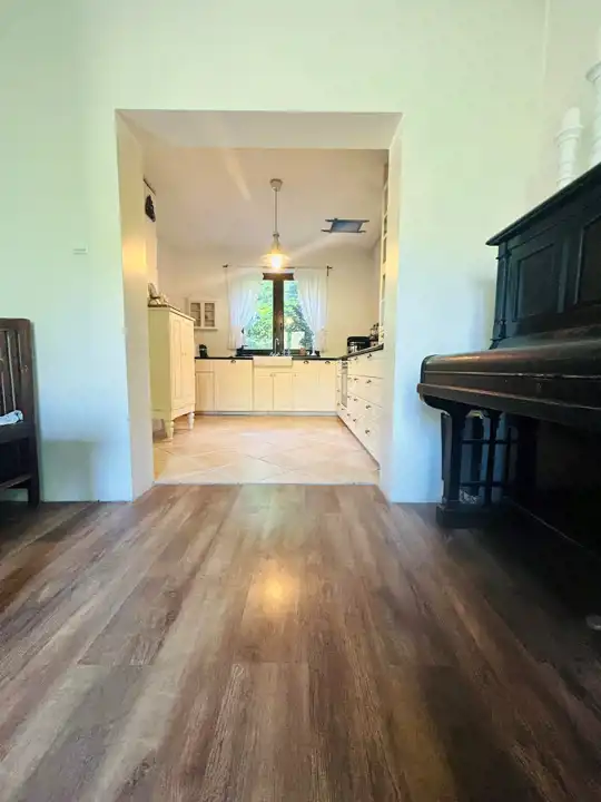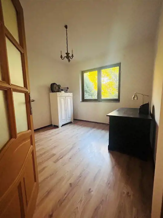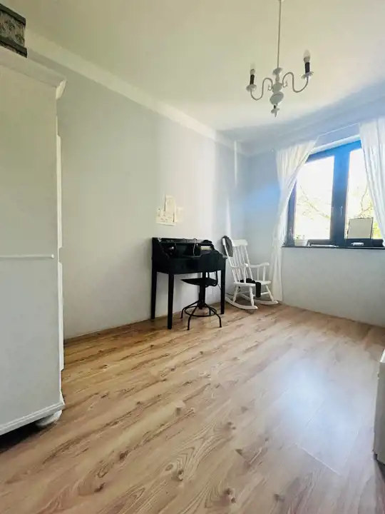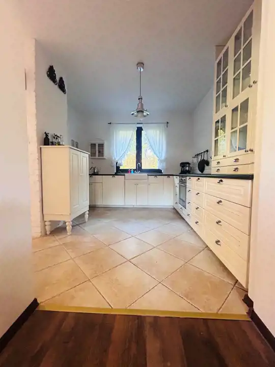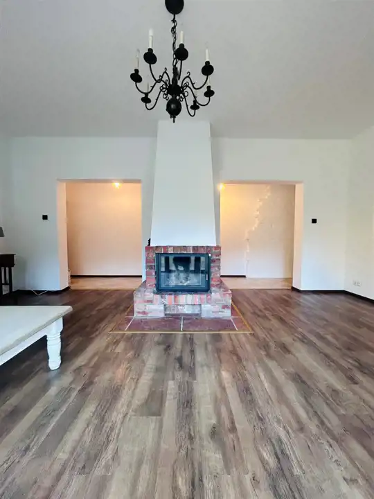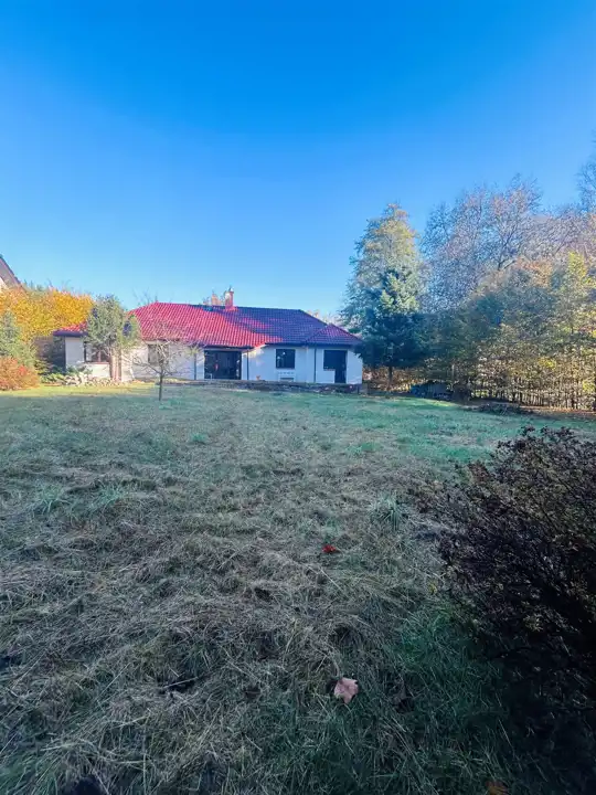 Oferujemy na sprzedaż uroczy dom o powierzchni 112 m2, zlokalizowany w spokojnej, zielonej okolicy niedaleko lasu, idealny do wypoczynku i relaksu. Dom składa się z 3 sypialni, salonu z kominkiem, w pełni wyposażonej kuchni oraz łazienki.