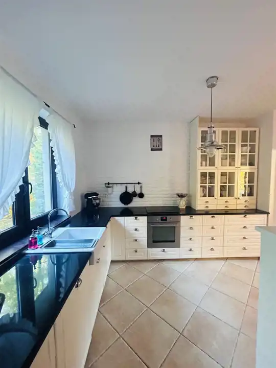 Cena 919 000 PLN. Dom jest wyposażony w sprzęt AGD oraz RTV, co sprawia, że od razu można się w nim zamieszkać.