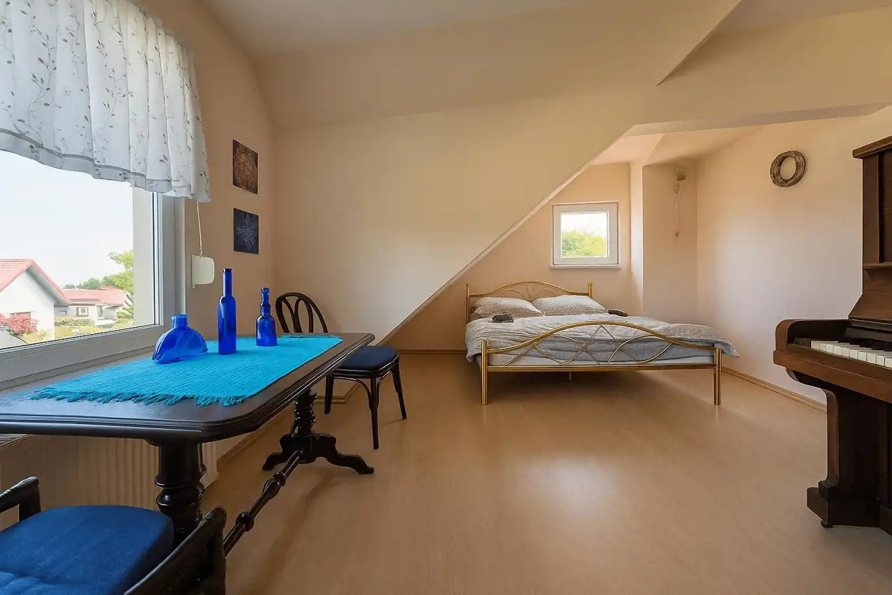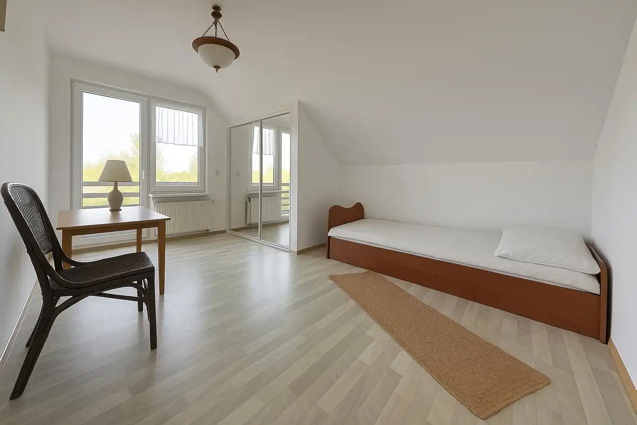 Dom bardzo przestronny i doświetlony, okna wychodzą na każdą stronę świata dzięki czemu cały dzień w domu jest jasno i słonecznie.