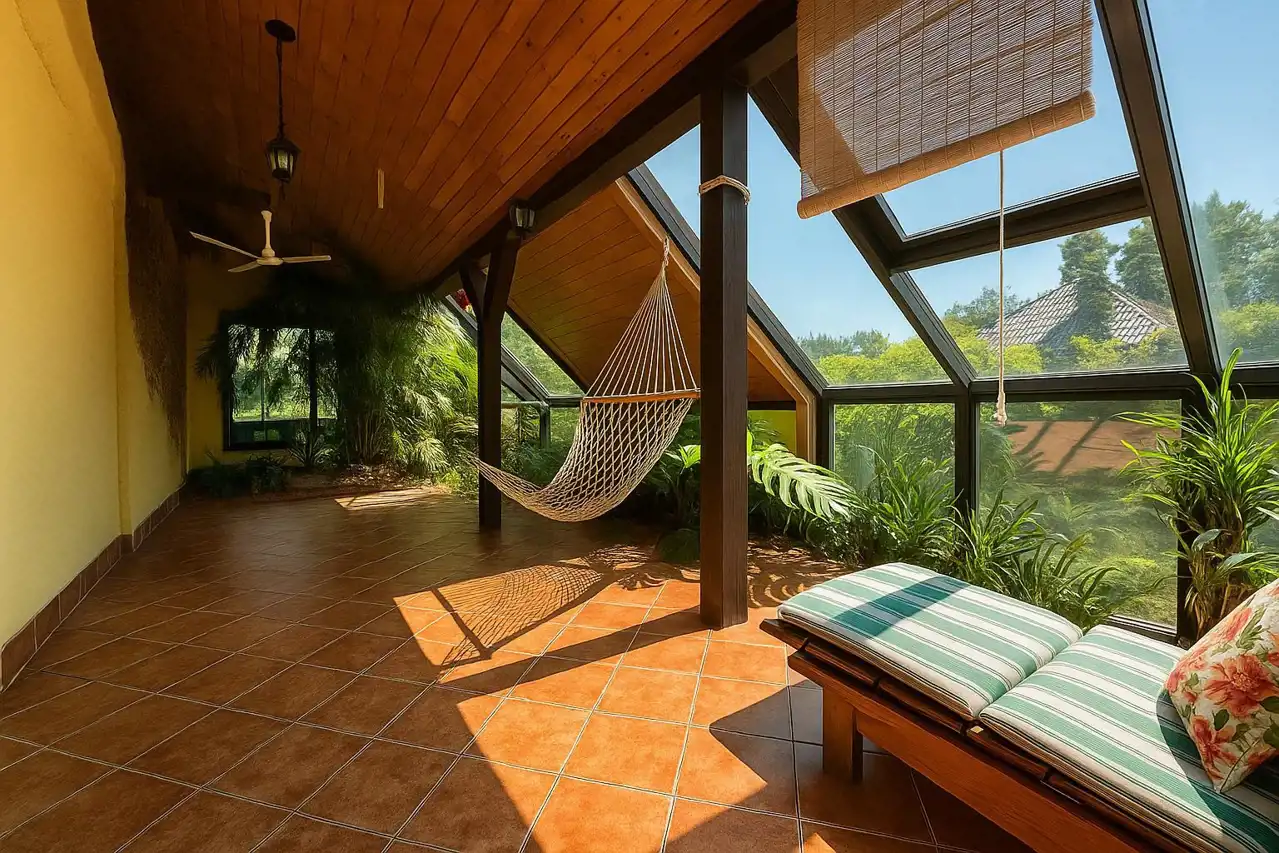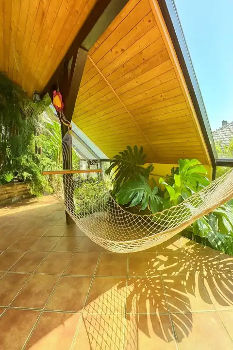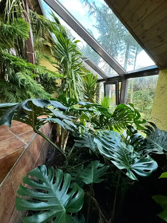 PARTER: powierzchnia użytkowa 60 m2 -znajdziemy tu cudowny ogród zimowy z wieloletnimi nasadzeniami, salon, przestronną kuchnię z małą jadalnią, pokój, wc oraz przedpokój i wiatrołap. Wchodząc na półpiętro widzimy spory pokój z garderobą.