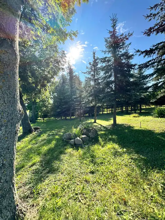 Ułożenie względem stron świata wjazd od północy, ogród od południa. Na działce są przeróżne nasadzenie, wiele jest drzew które dodają dodatkową wartość, której nie kupimy za pieniądze. Budując dom w takim klimacie mamy już w części zagospodarowany ogród.