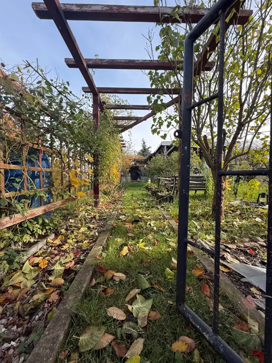 - około połowa powierzchni została zagospodarowana jako ogród warzywny, z folią ogrodniczą, grządkami i miejscem do uprawy roślin,