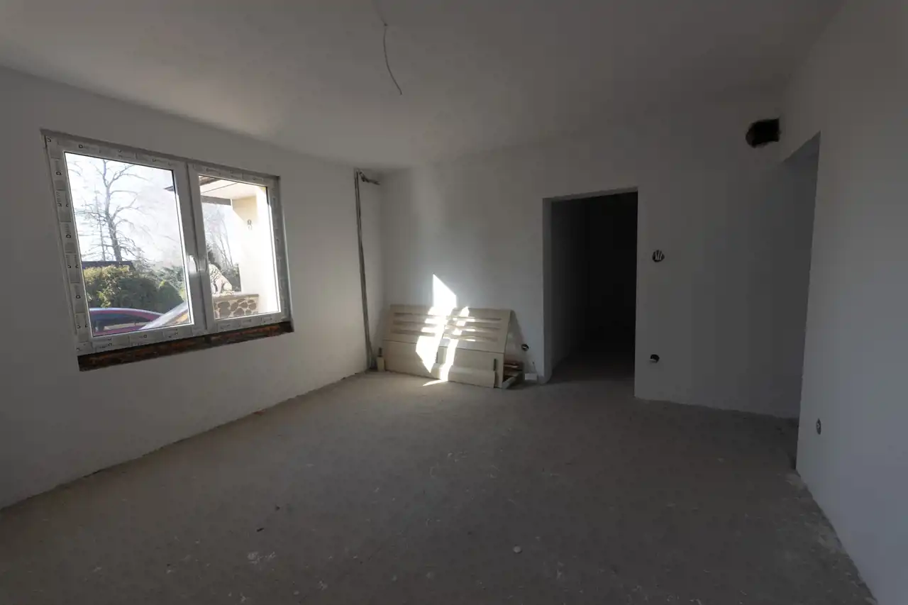 Na parterze budynku, od frontu znajduje się oddzielne mieszkanie składające się z 2 pokoi, aneksu kuchennego, łazienki do własnej aranżacji.