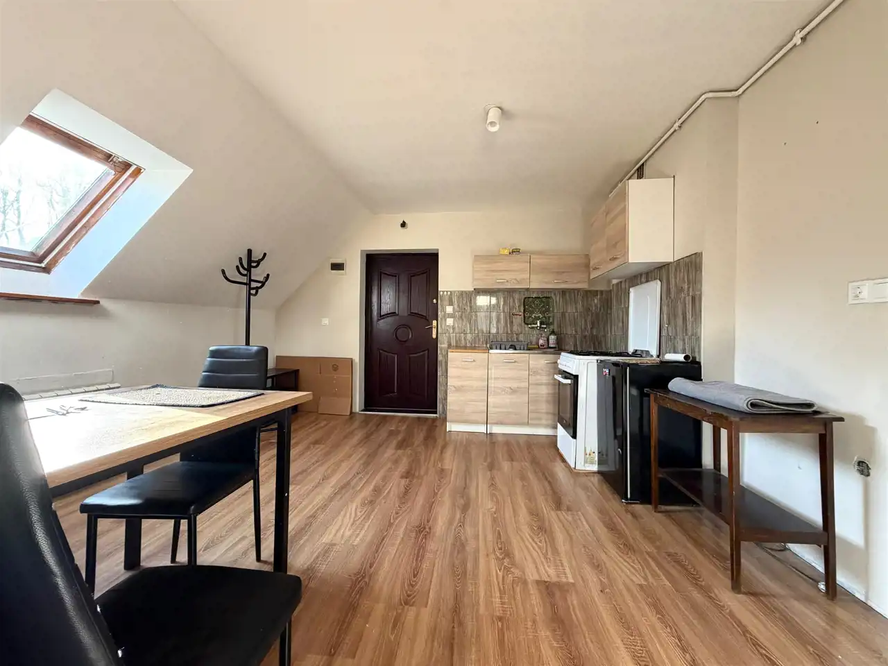 Mieszkanie jest na pierwszym piętrze, powierzchnia 37,16m2 na co składa się kuchnia z jadalnia, salon, sypialnia, łazienka z wc oraz pomieszczenie które może służyć jako garderoba/pom gospodarcze lub o tę przestrzeń można powiększyć łazienkę.