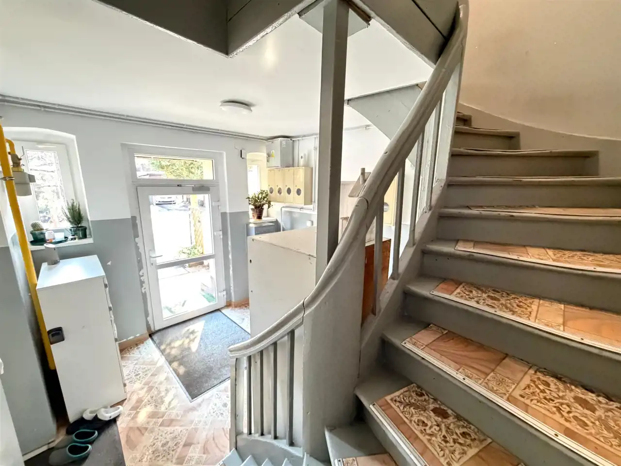 Budynek w którym położone jest mieszkanie jest 4 rodzinny na działce o powierzchni 614 m2. Zarządca dba o nieruchomość, która jest po remoncie i jest zadbana. Na działce znajduje się budynek z komórkami (komórka przynależna-6,4m2), które są dodatkowym miejscem do przechowywania, tak samo jak spora piwnica (5,4m2) oraz strych bezpośrednio nad mieszkaniem. Dodatkowo na działce jest miejsce do parkowania samochodów i kawałek ogródka do wspólnego korzystania.