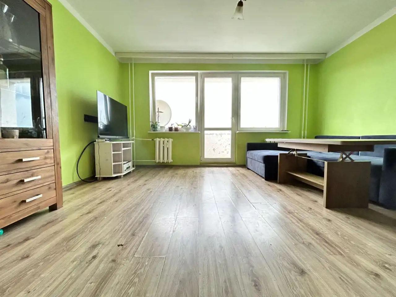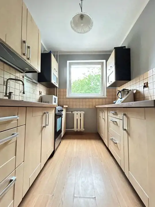 Lokal jest dwustronny – z ekspozycją północ-południe. Salon z wyjściem na balkon znajduje się od strony północnej, co zapewnia dobre doświetlenie wnętrza przez cały dzień. Mieszkanie składa się z widnej, oddzielnej kuchni, dwóch sypialni, przestronnego salonu, łazienki oraz osobnego WC. Stan techniczny – do odświeżenia.