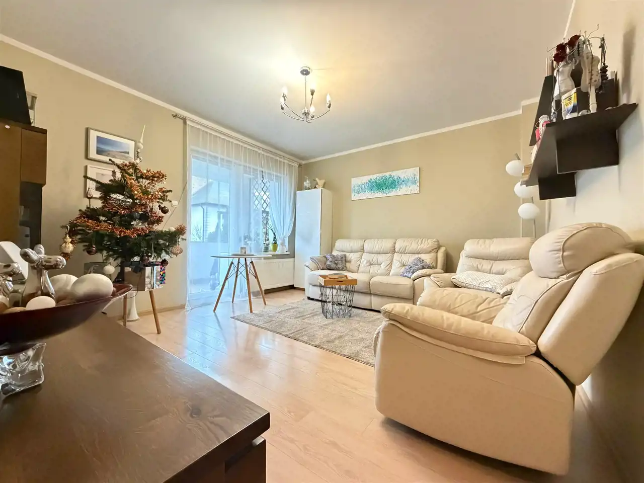 przestronny salon z wyjściem na balkon