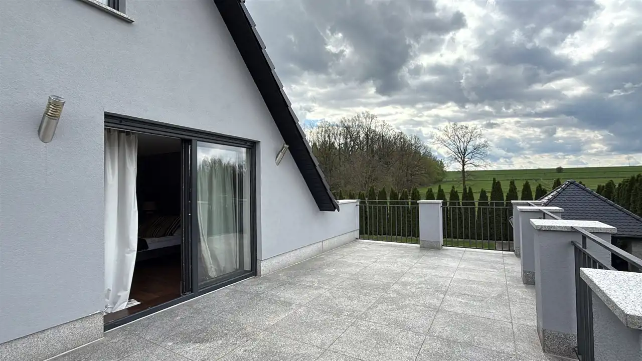 Budynek z poddaszem użytkowym, w wysokim standardzie, balkon, garaż