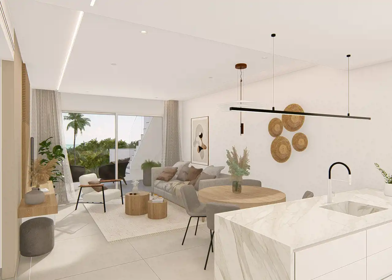 Nowy kompleks apartamentów położony na działce tuż obok laguny w El Raso w pobliżu Guardamar der Segura, Costa Blanca. Osiedle składa się z 114 nieruchomości w opcji 2/3 sypialnie, 2 lazienki, kuchnia połączona z jadalnią i salonem oraz na parterze ganek (taras) o powierzchni 19m2 i ogródek od 41-260m2 zaś na pietrze solarium ( taras na dachu) o powierzchni 67m2.