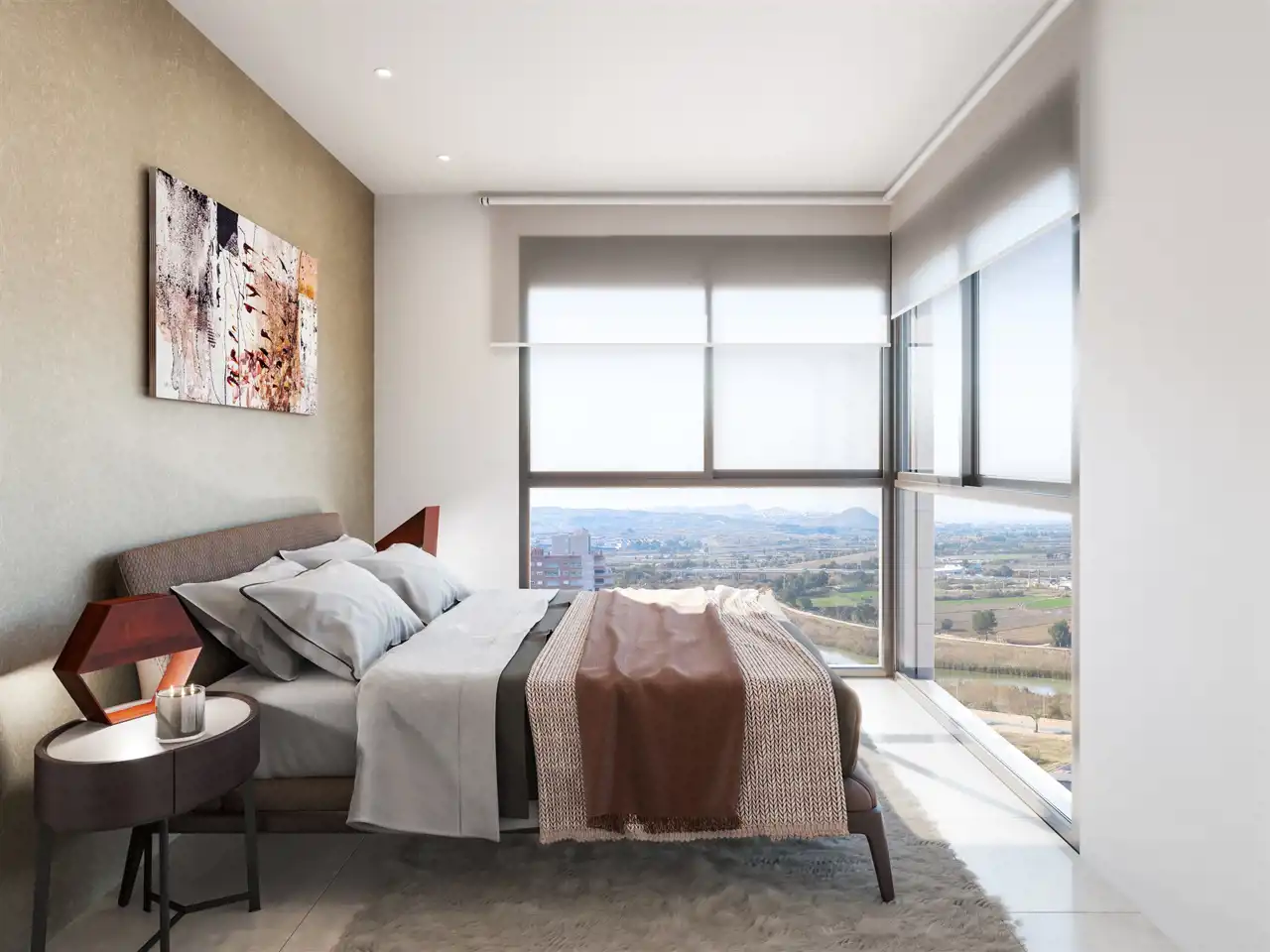 Nowoczesny, ośmiopiętrowy budynek, przy wydnach w Guardamar.