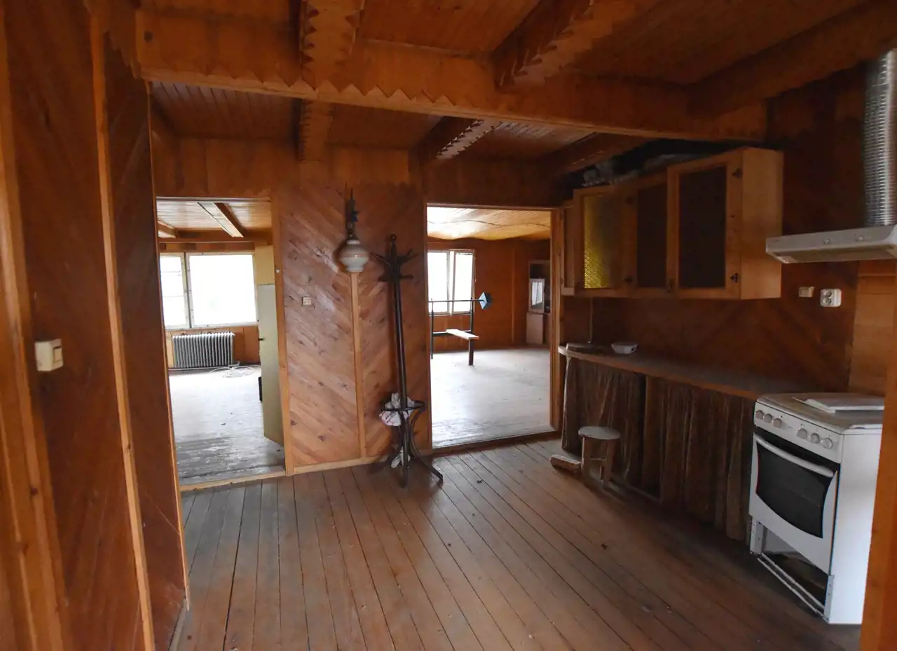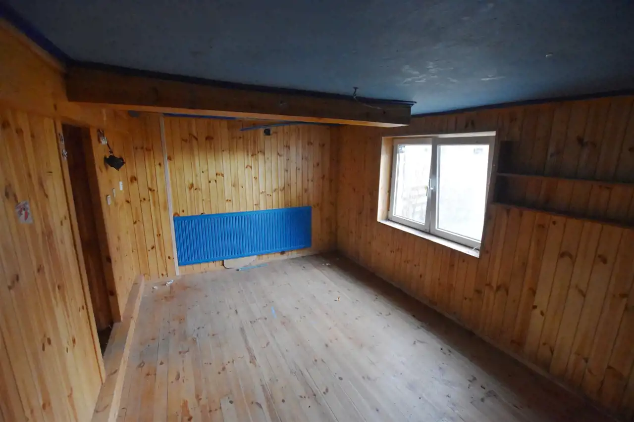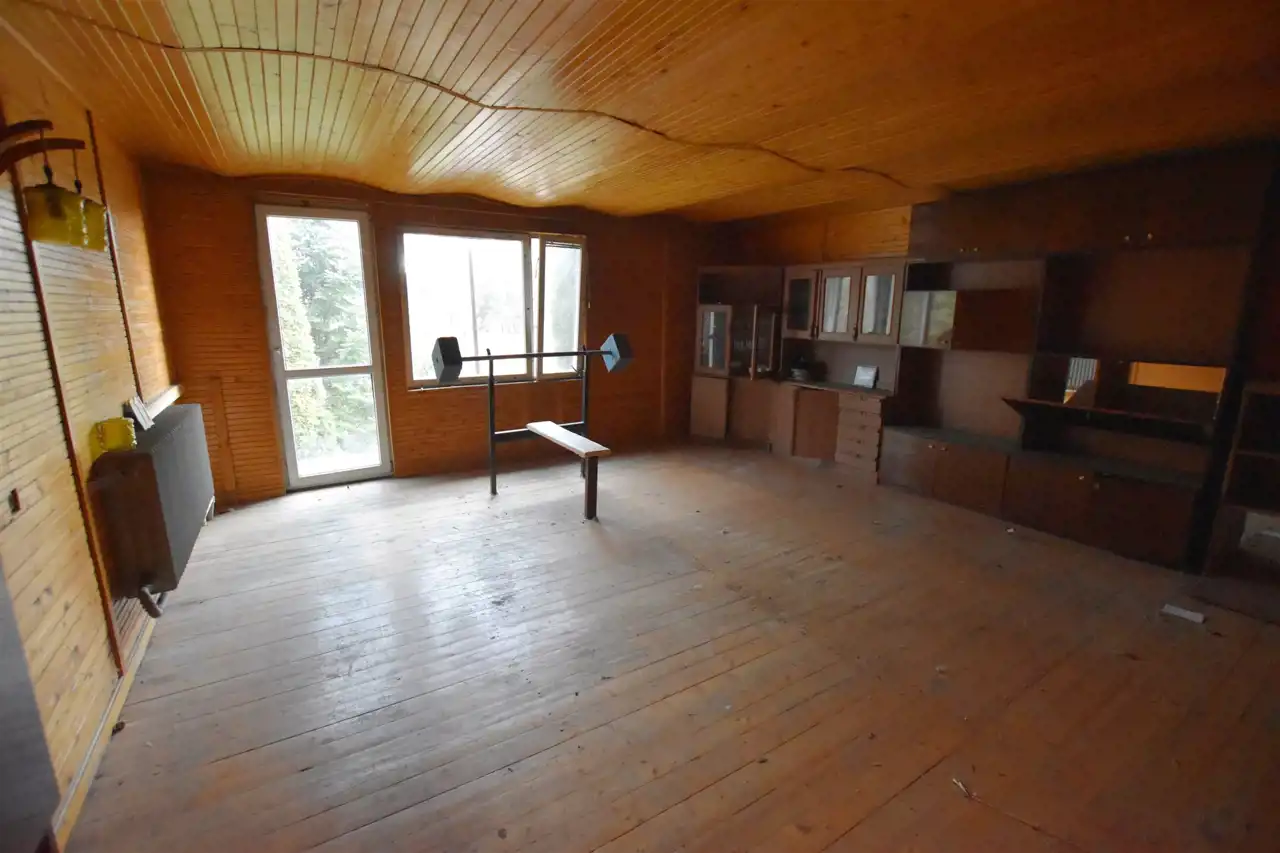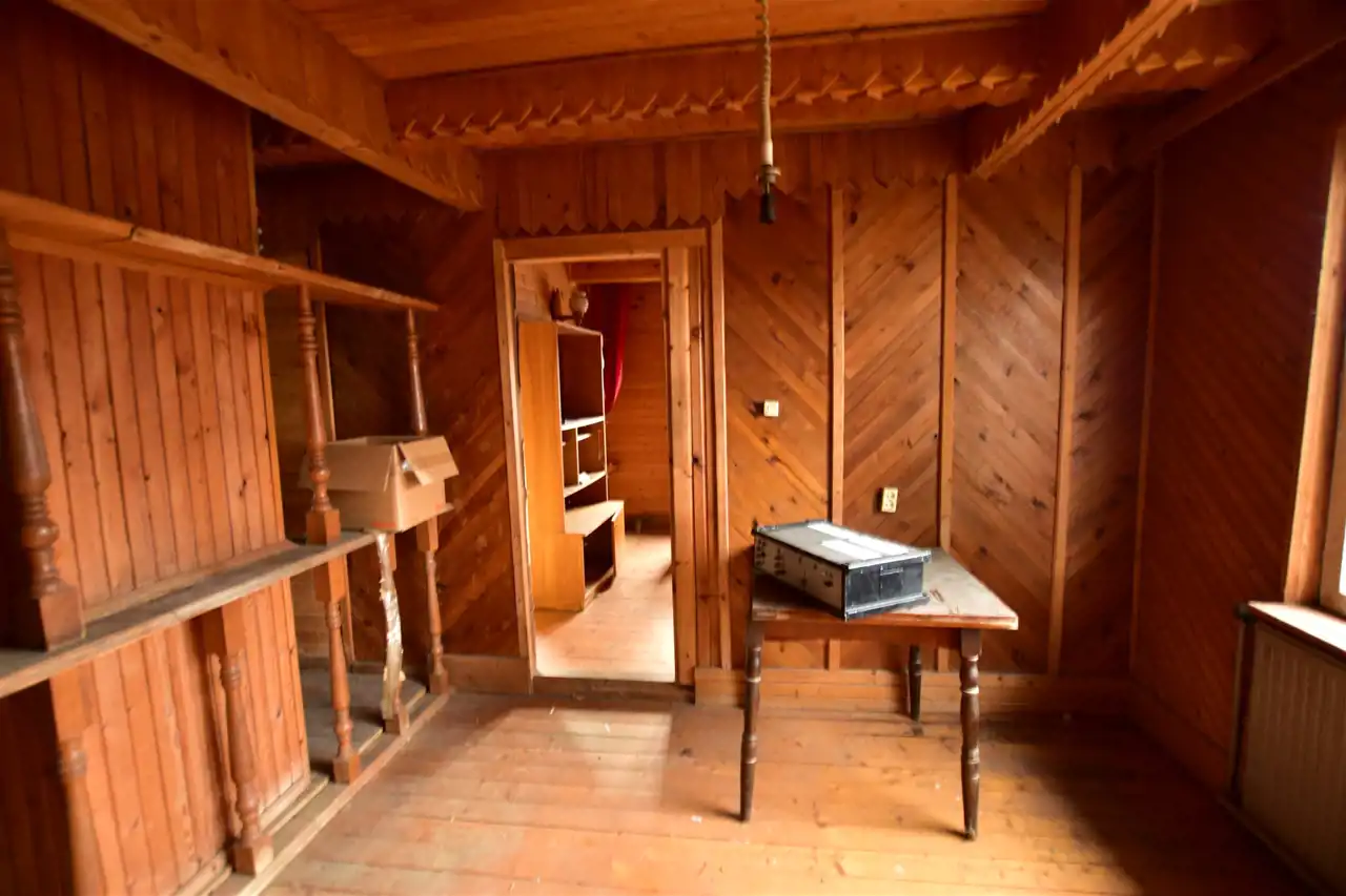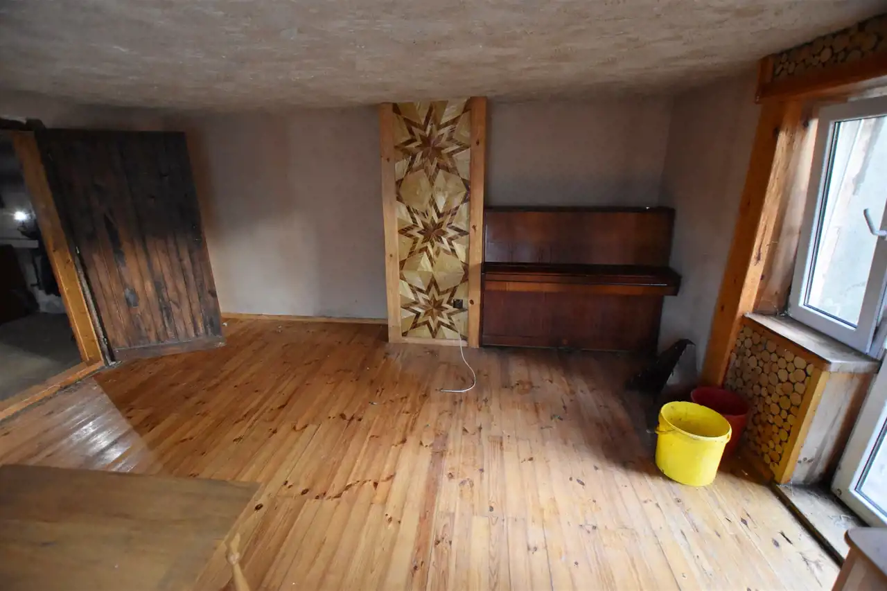 Na piętrze znajdują się cztery pokoje (10,4 m², 28 m², 22 m², 9,8 m²) oraz zaadaptowana przestronna kuchnia o powierzchni 22 m². Do dyspozycji jest również duża łazienka (7,8 m²) oraz taras (14 m²), który stwarza idealne miejsce do relaksu i podziwiania okolicznej przyrody. Budynek wymaga remontu, szczególnie w zakresie wymiany starych drewnianych okien i ocieplenia zewnętrznego, co daje możliwość aranżacji przestrzeni dokładnie według własnych potrzeb i upodobań.