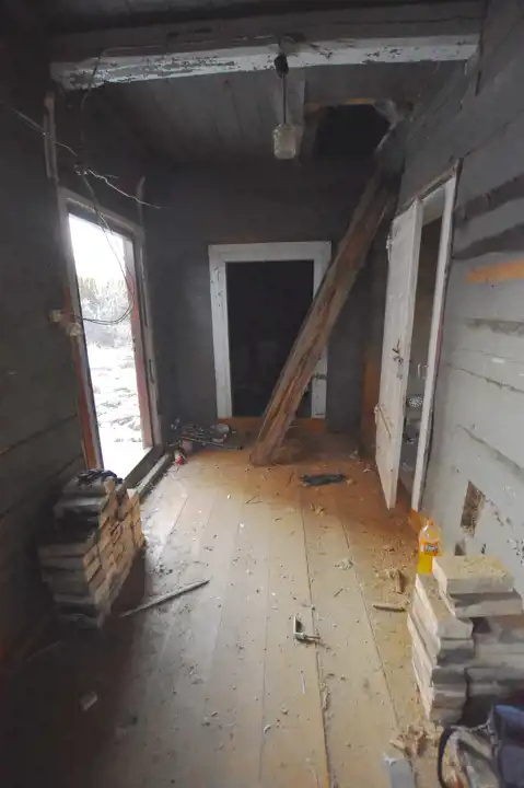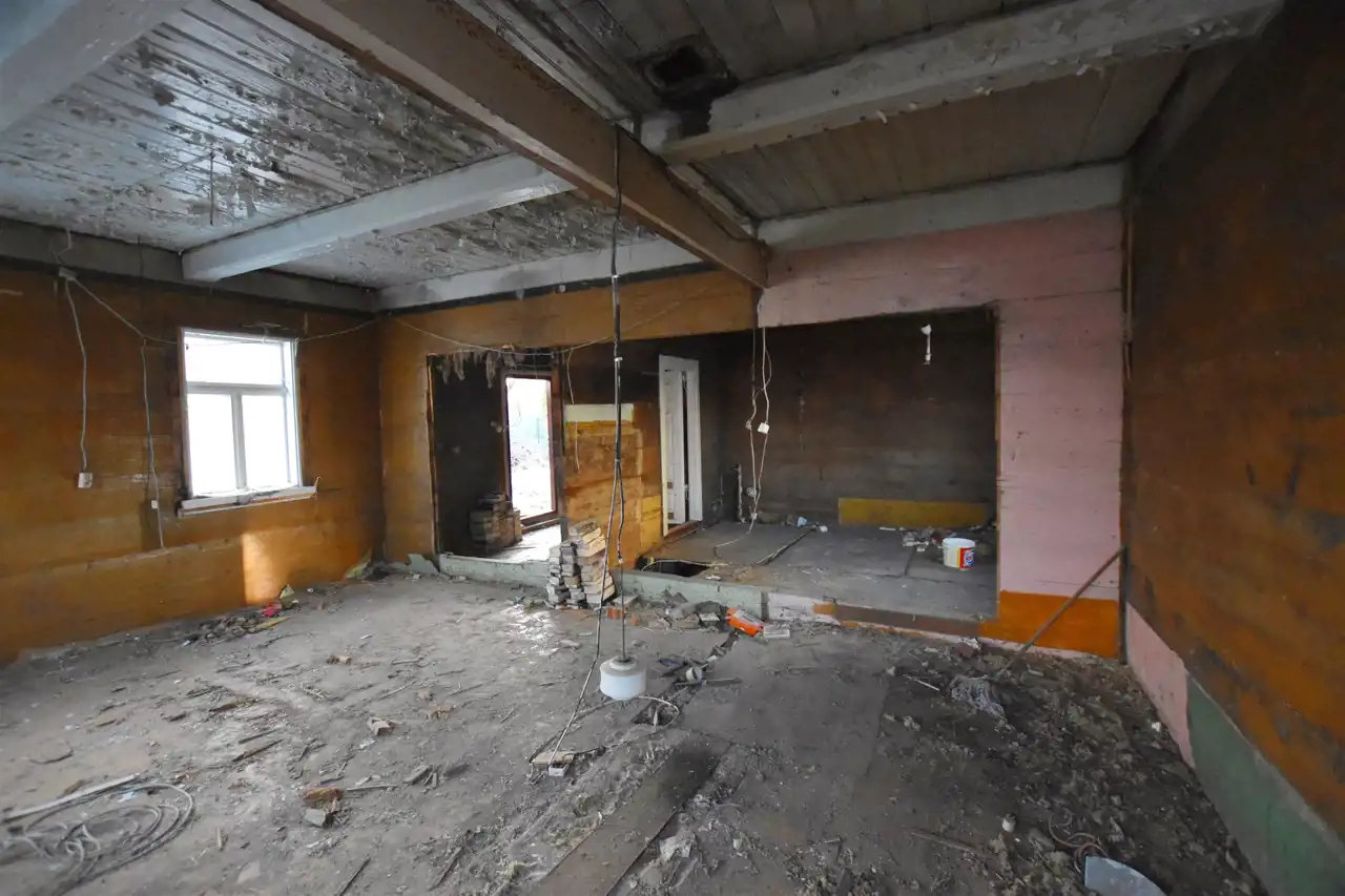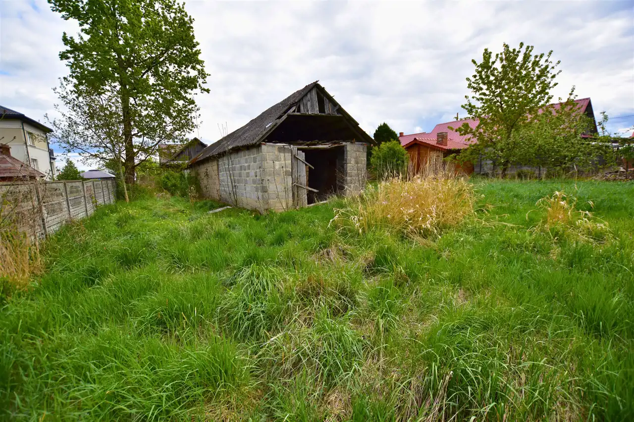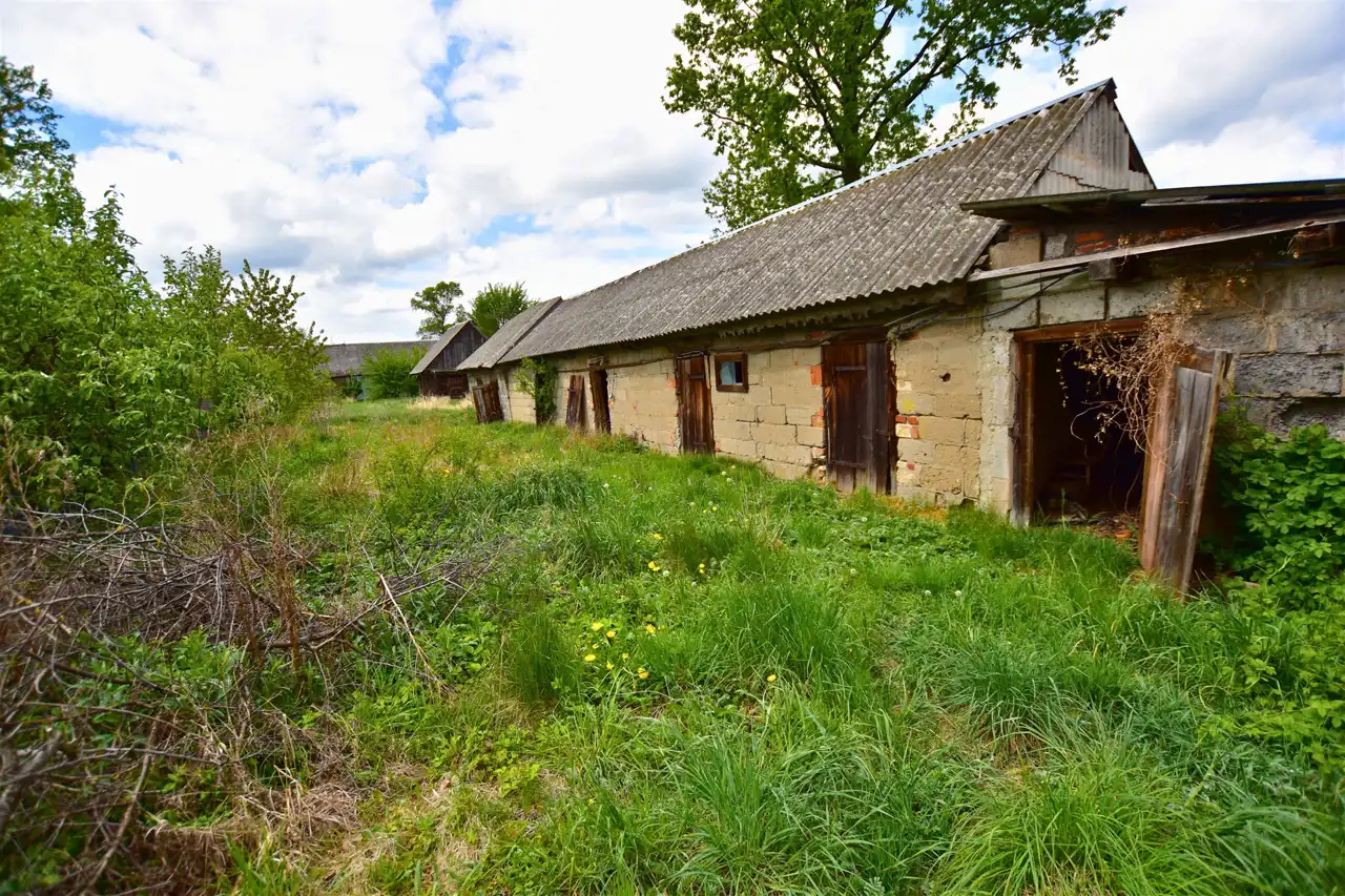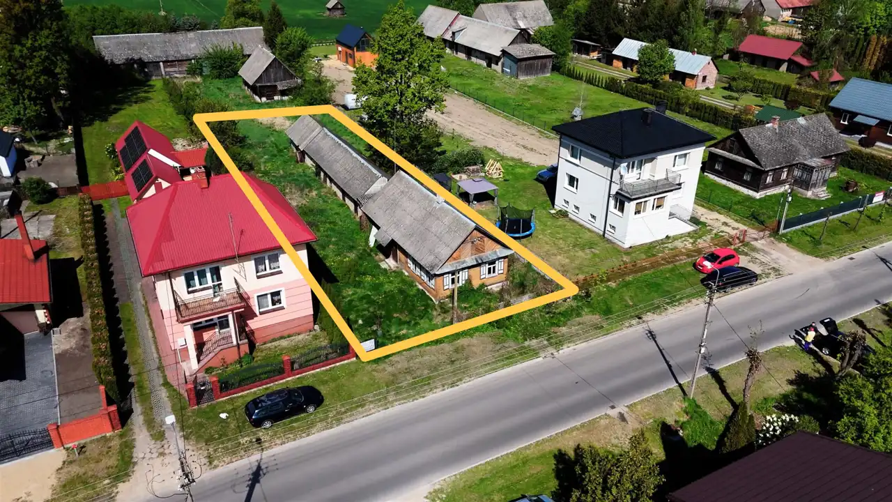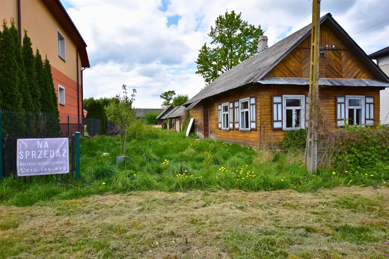 Dom, zbudowany z dyla drewnianego w latach 60., zachowany jest w bardzo dobrej kondycji. Wewnątrz znajduje się obszerny przedpokój, dwa pokoje, kuchnia oraz duże pomieszczenie gospodarcze, które można zaadoptować na łazienkę, dostosowując przestrzeń do własnych potrzeb. Na budynek zostały przeprowadzone wstępne prace remontowe i zrobiony został projekt przebudowy. Media, takie jak prąd oraz wodociąg, są już podłączone do nieruchomości, a kanalizacja jest do szybkiego podłączenia – znajduje się tuż przy granicy działki.