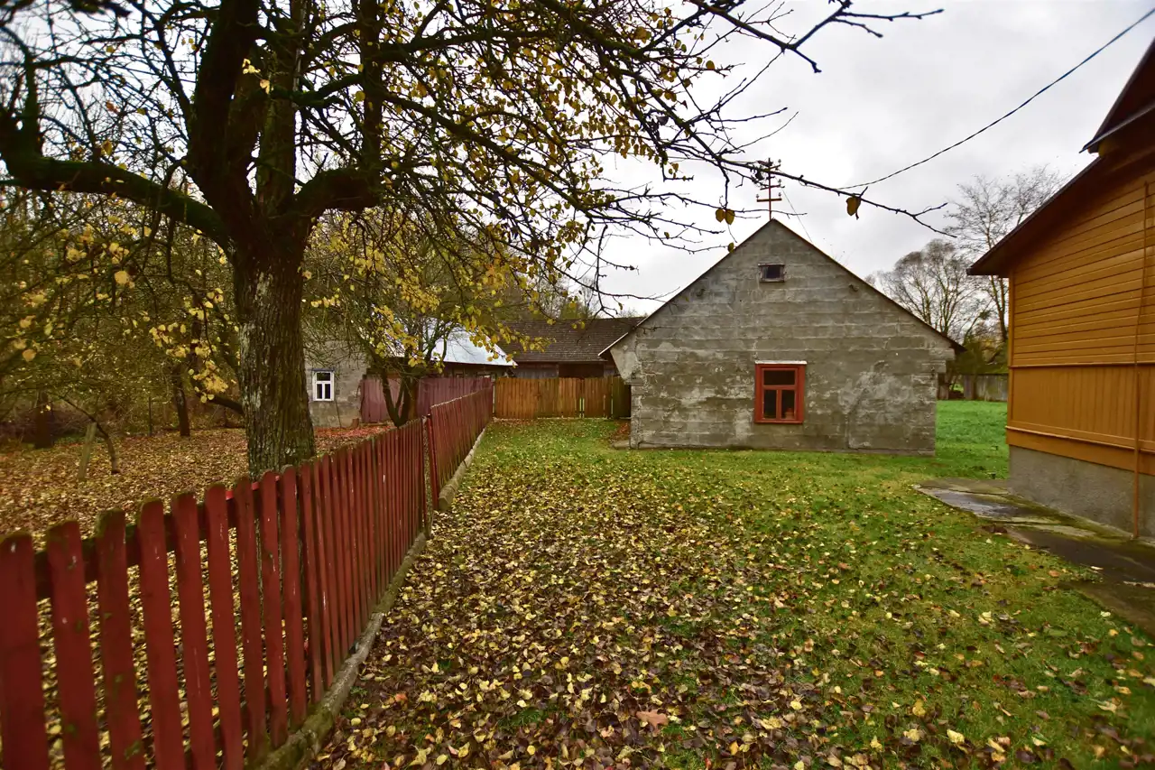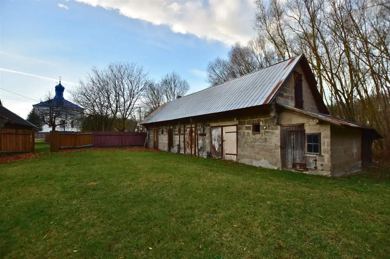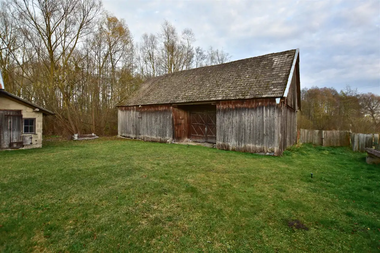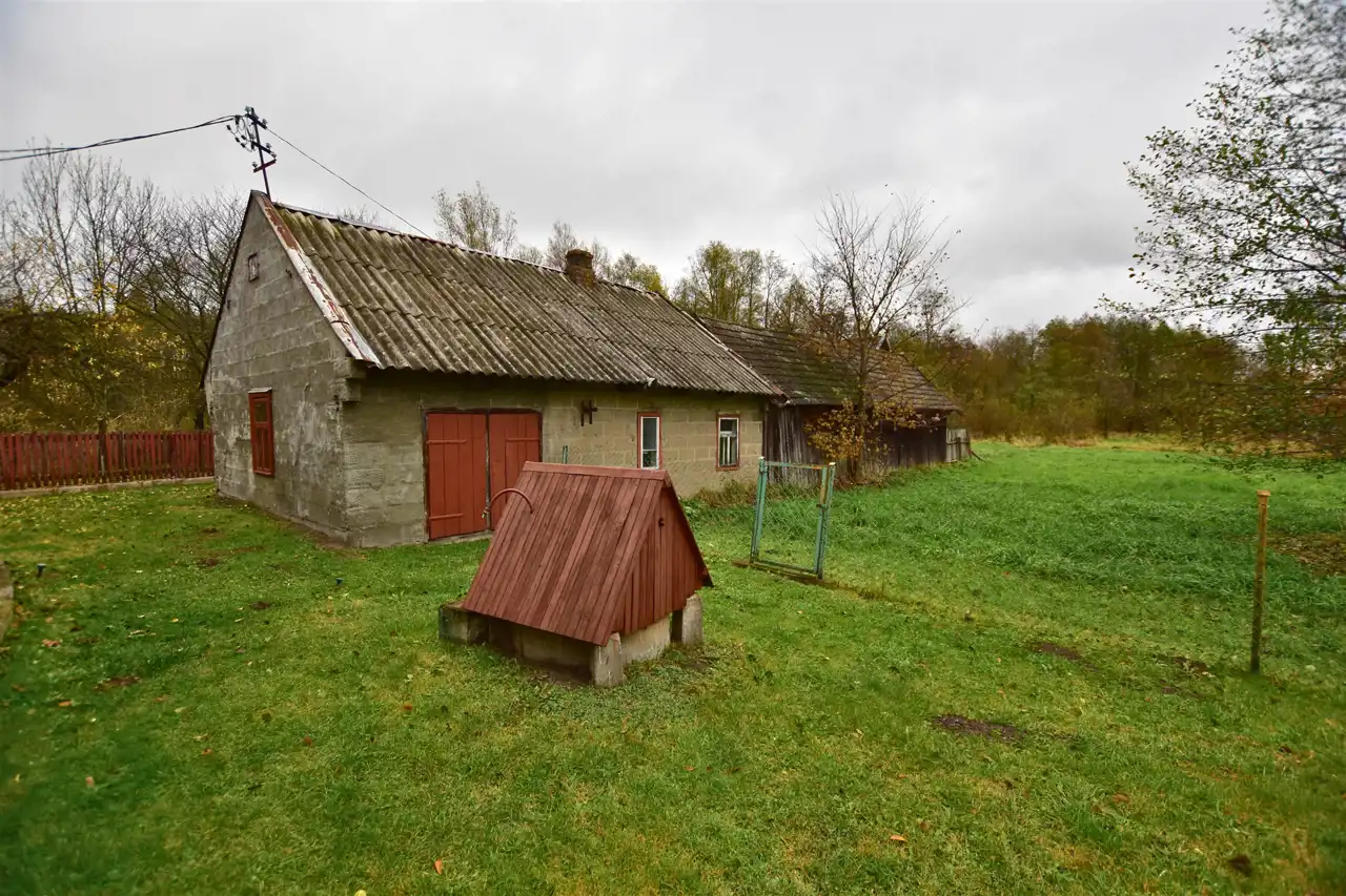 Działka o powierzchni 3078 m² jest ogrodzona z trzech stron, a jej szeroki front wynoszący 46 m daje możliwości aranżacyjne. Na działce znajdują się także studnia oraz dwa murowane chlewki o powierzchniach 60 i 70 m², z czego w większym z nich urządzono letnią kuchnię. Dodatkowo, na terenie posesji znajduje się drewniana wiata oraz stodoła o powierzchni około 100 m². Teren bogaty w nasadzenia, w tym jabłonie i grusze, zachęca do spędzania czasu na świeżym powietrzu.