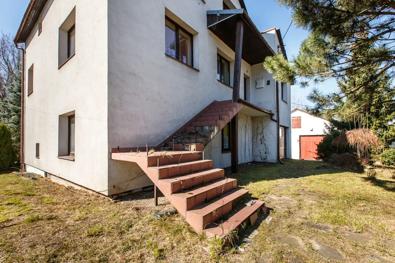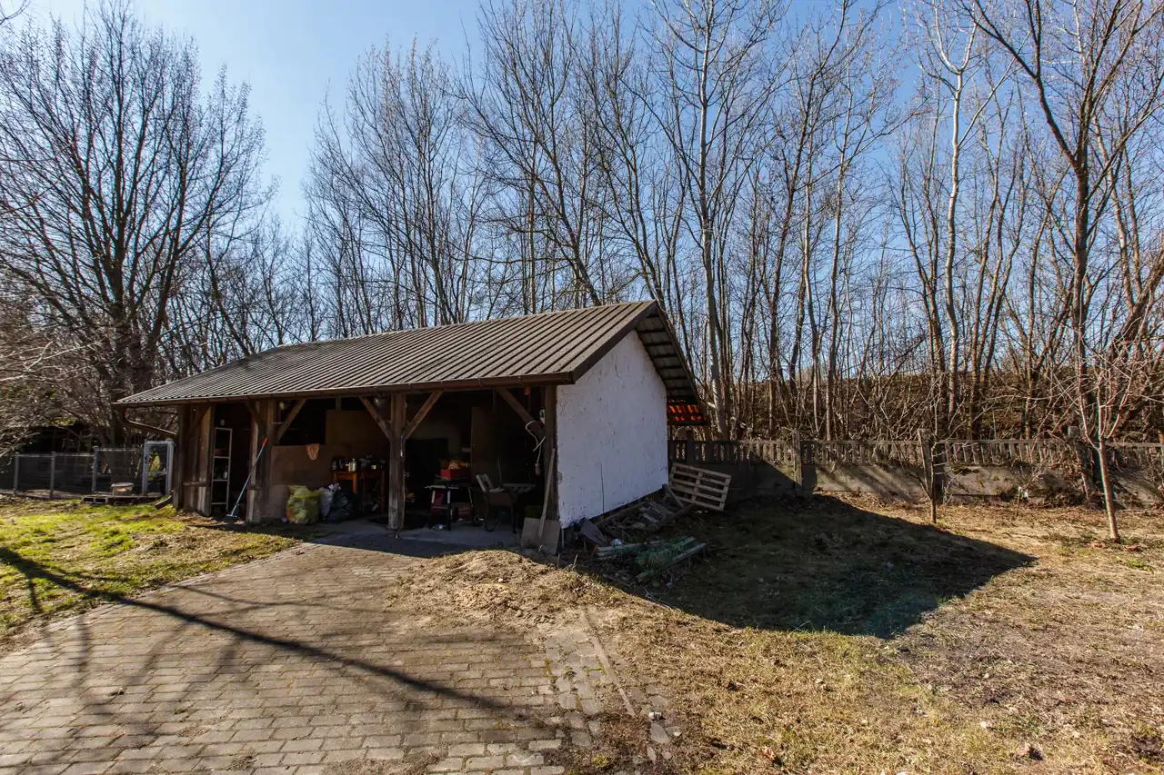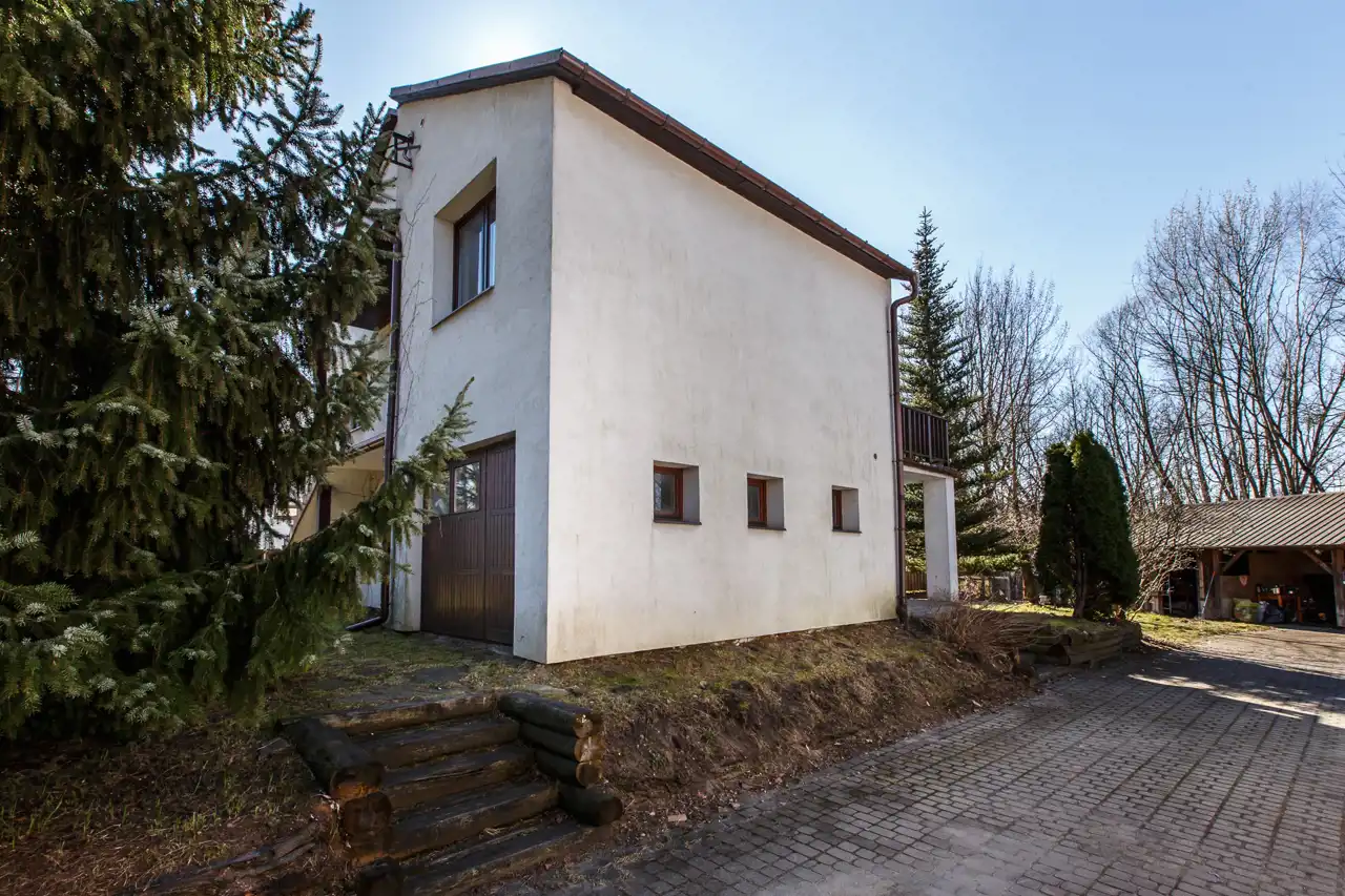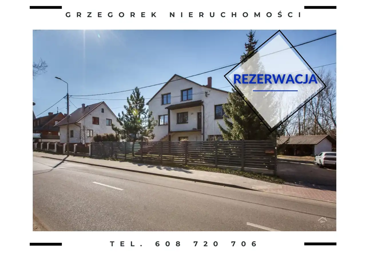Na działce o powierzchni 1468 m2 znajduje się dom o pow. użytk. ok.300m2, budynek gospodarczy (obecnie stolarnia) ok.300m2 oraz wiata. Dojazd drogą asfaltową, dostępne wszystkie media miejskie (gaz w ulicy). Na działce liczne nasadzenia i krzewy.