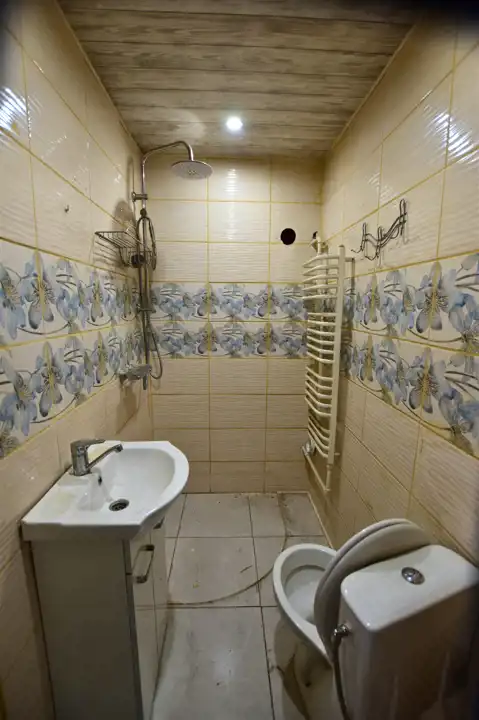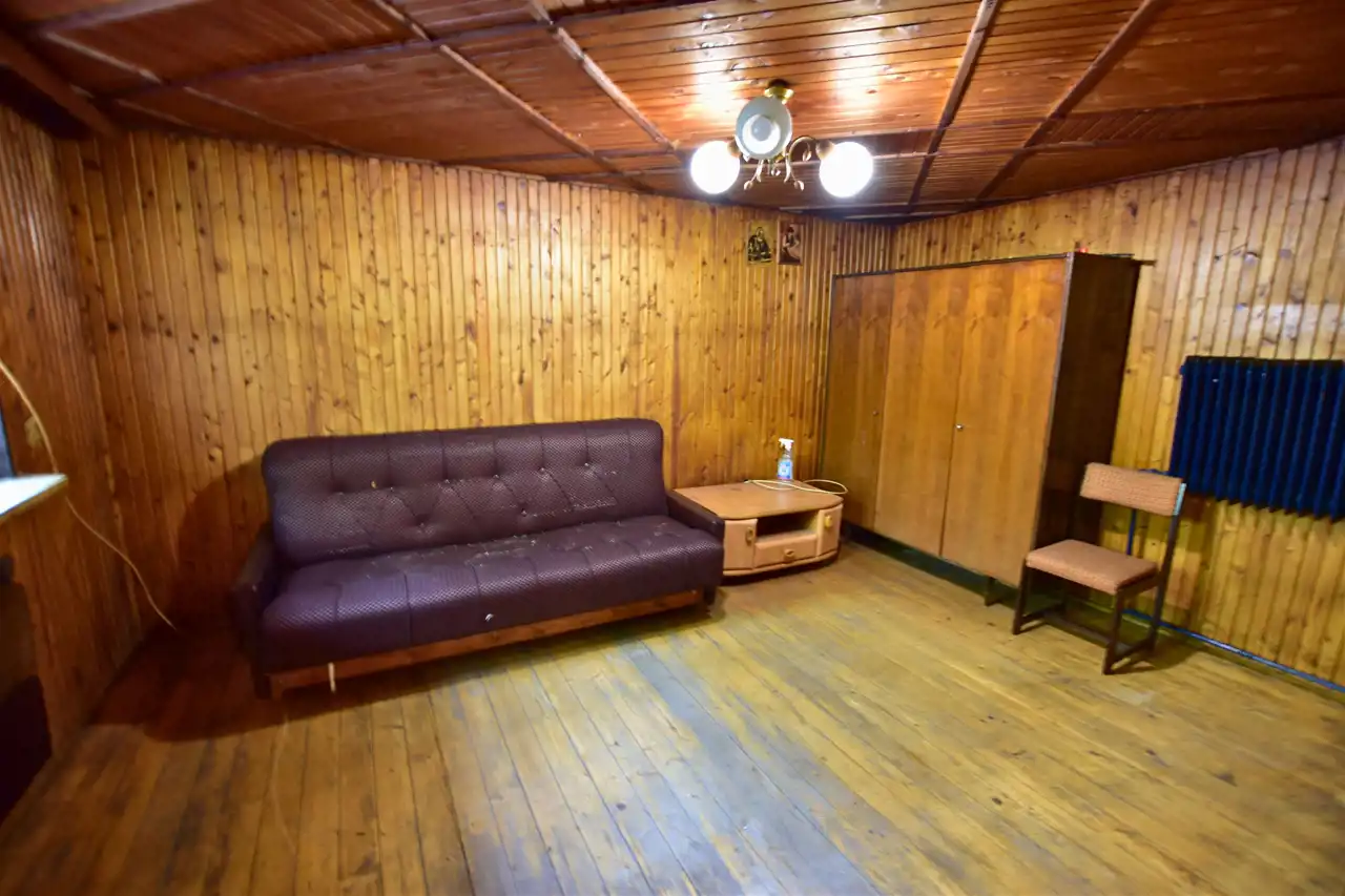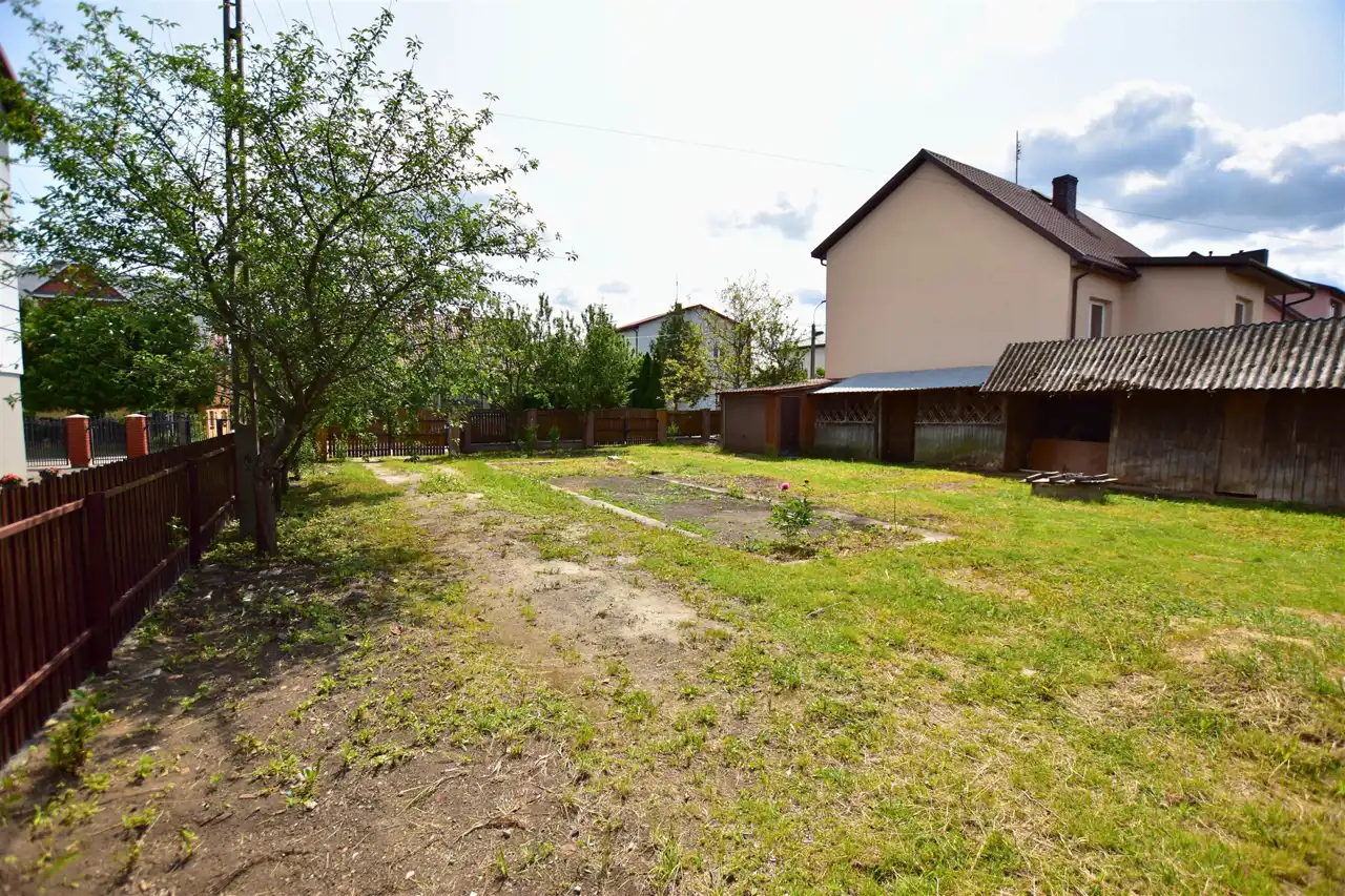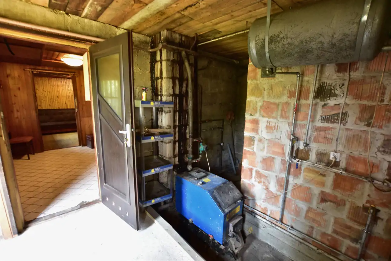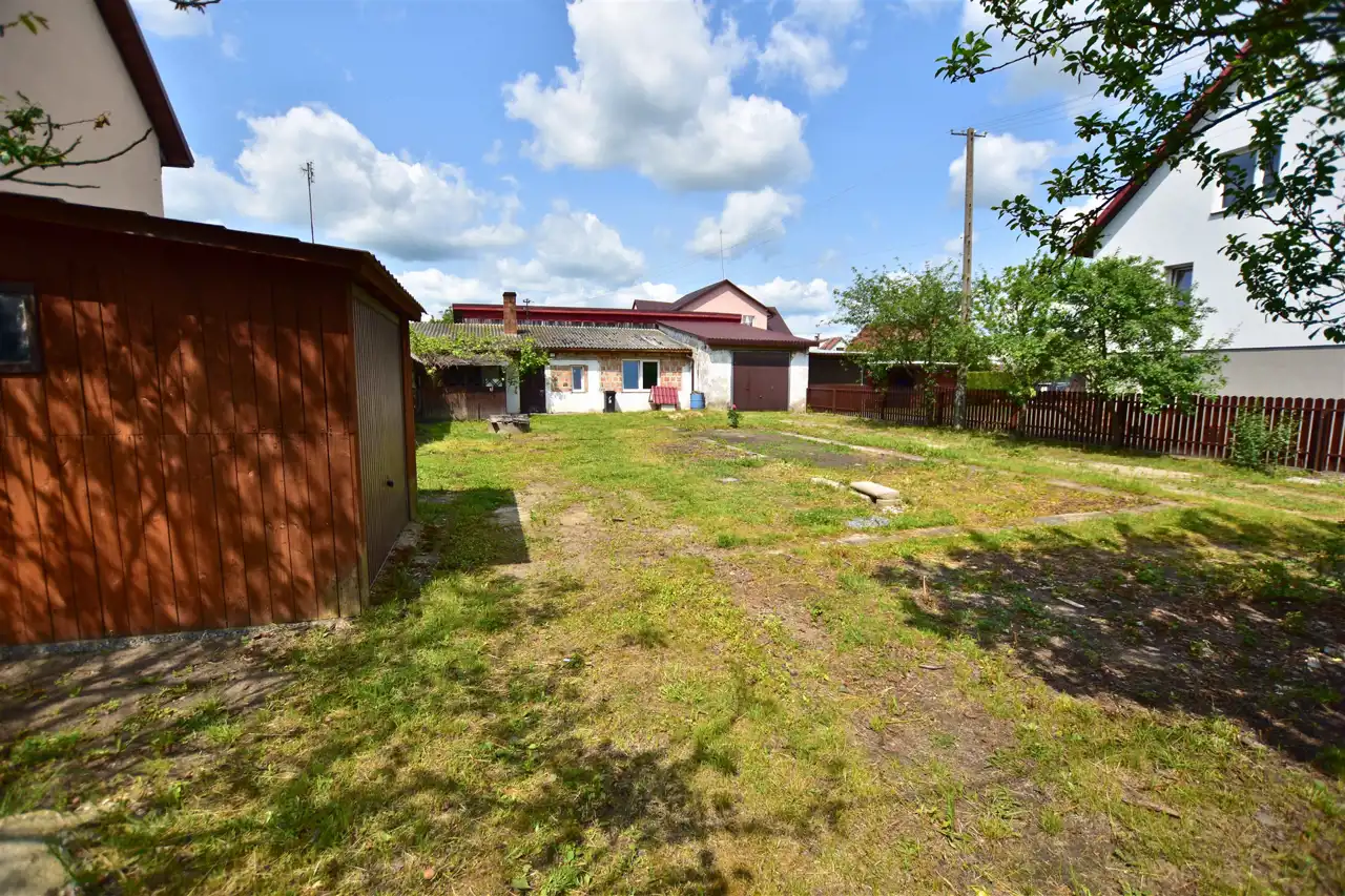 Na działce znajduje się budynek gospodarczy o powierzchni około 65 m². W jego skład wchodzą dwa pokoje, kuchnia z kotłownią oraz dwie łazienki, z czego jedna została wyremontowana. Ogrzewanie centralne, większość okien wymienionych na PCV zapewniają komfort użytkowania. Dodatkowo, na terenie posesji znajdują się dwa garaże, wiata i studnia, co zwiększa funkcjonalność tej nieruchomości.