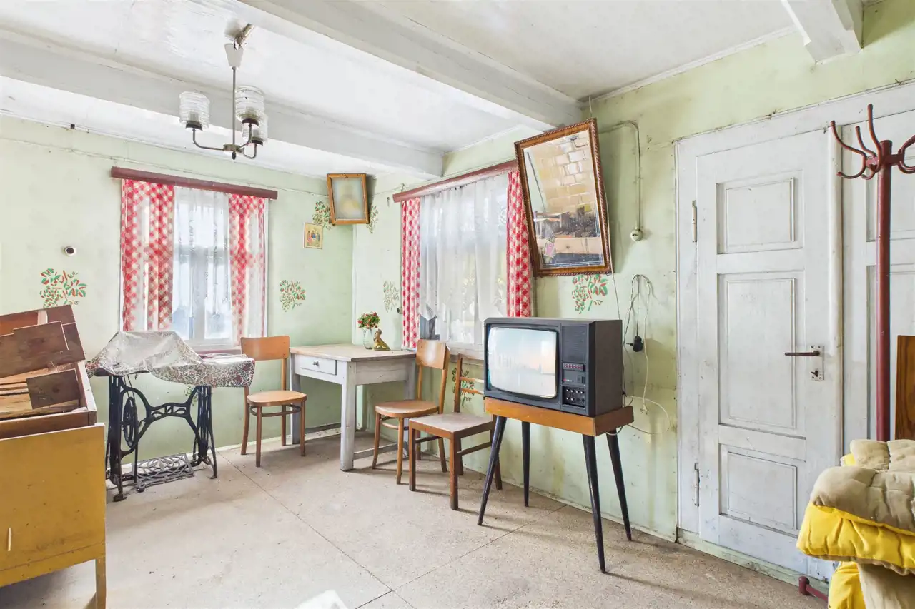 - Media Ogrzewanie: piec kaflowy; Woda: w ulicy; Kanalizacja: w ulicy; Prąd: w budynku; Gaz: brak
