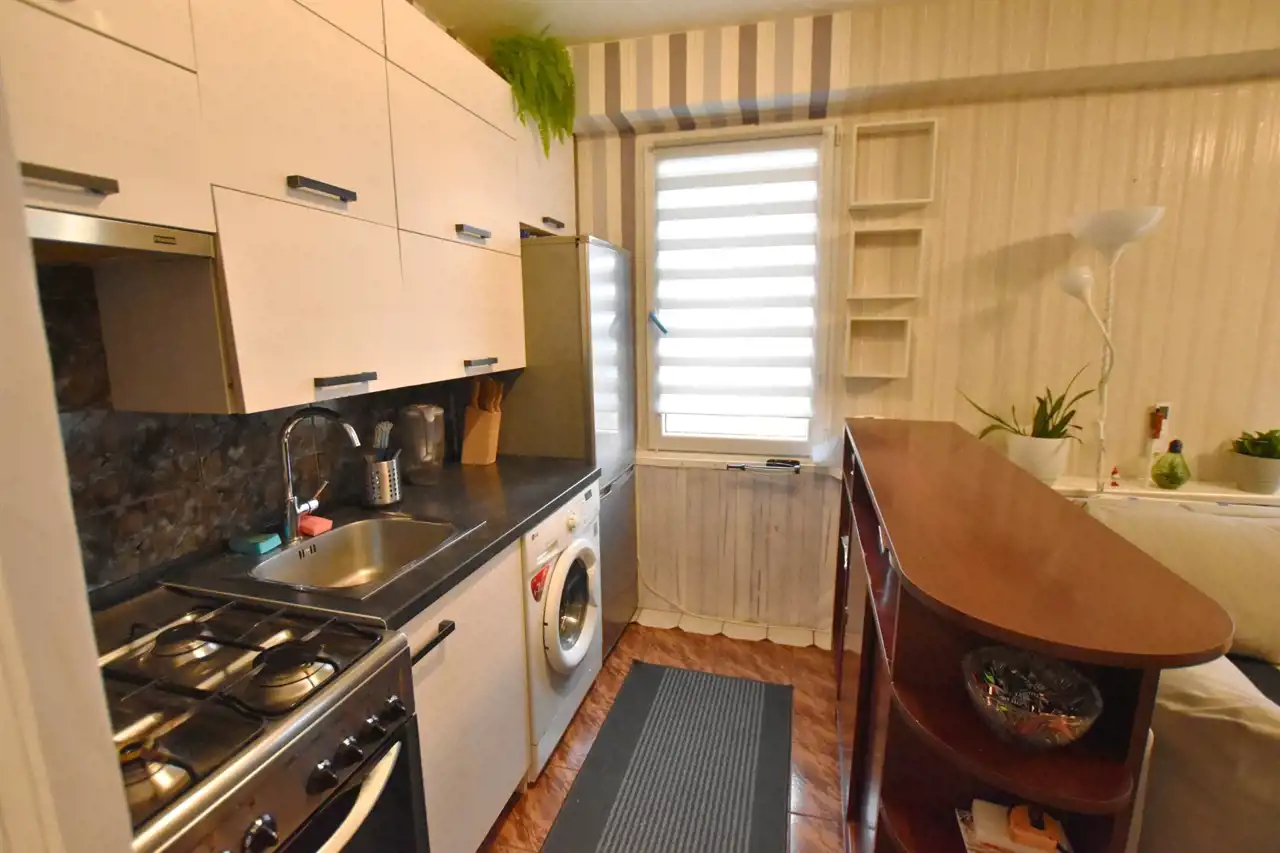 Mieszkanie o powierzchni 35,64 m² usytuowane jest na 4. piętrze czteropiętrowego bloku z wielkiej płyty, wybudowanego w 1987 roku. Przemyślany układ pomieszczeń oraz funkcjonalność wnętrza, gotowego do zamieszkania, pozwalają na dowolne aranżacje. Przestronny salon wraz z aneksem kuchennym (22 m²) stwarza przytulną część dzienną, gdzie punkt centralny stanowi praktyczna wyspa kuchenna. Z salonu prowadzi wyjście na dobrze nasłoneczniony, zachodni balkon, który zwiększa komfort użytkowania powierzchni mieszkalnej, a zamontowana klimatyzacja, dyskretnie usytuowana na barierce balkonowej, nie wpływa na metraż użytkowy.