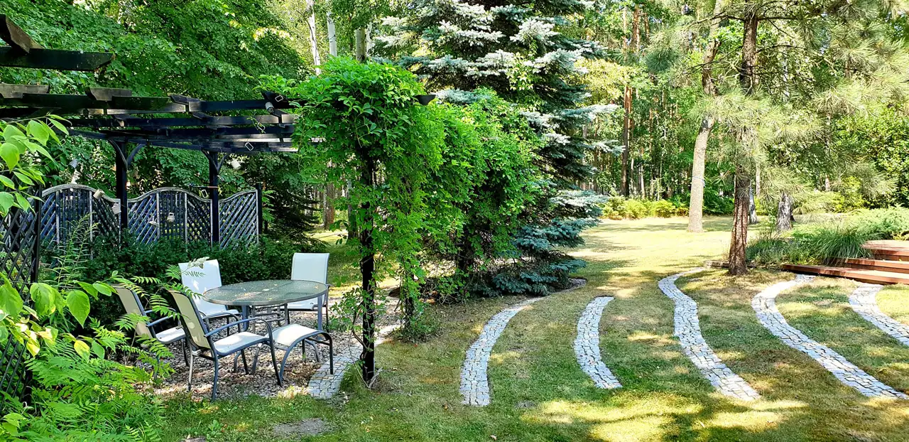 Działka o łącznej powierzchni 5.355m2 (część budowlana ok. 3000m2 i leśna ok. 2000m2), koło domu ładnie zagospodarowana z automatycznym podlewaniem a część leśna pozostawiona naturalnie, jest ogrodzona i oddalona od ulicy co daje kameralny klimat miejsca. Zabudowa działki to dom jednorodzinny, domek letniskowy i altana na drewno.