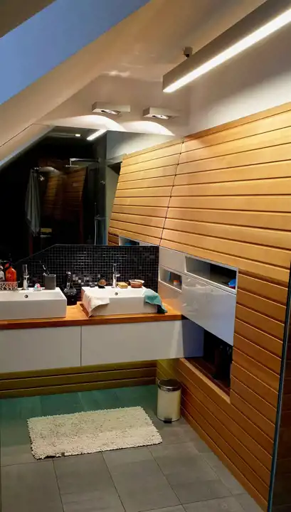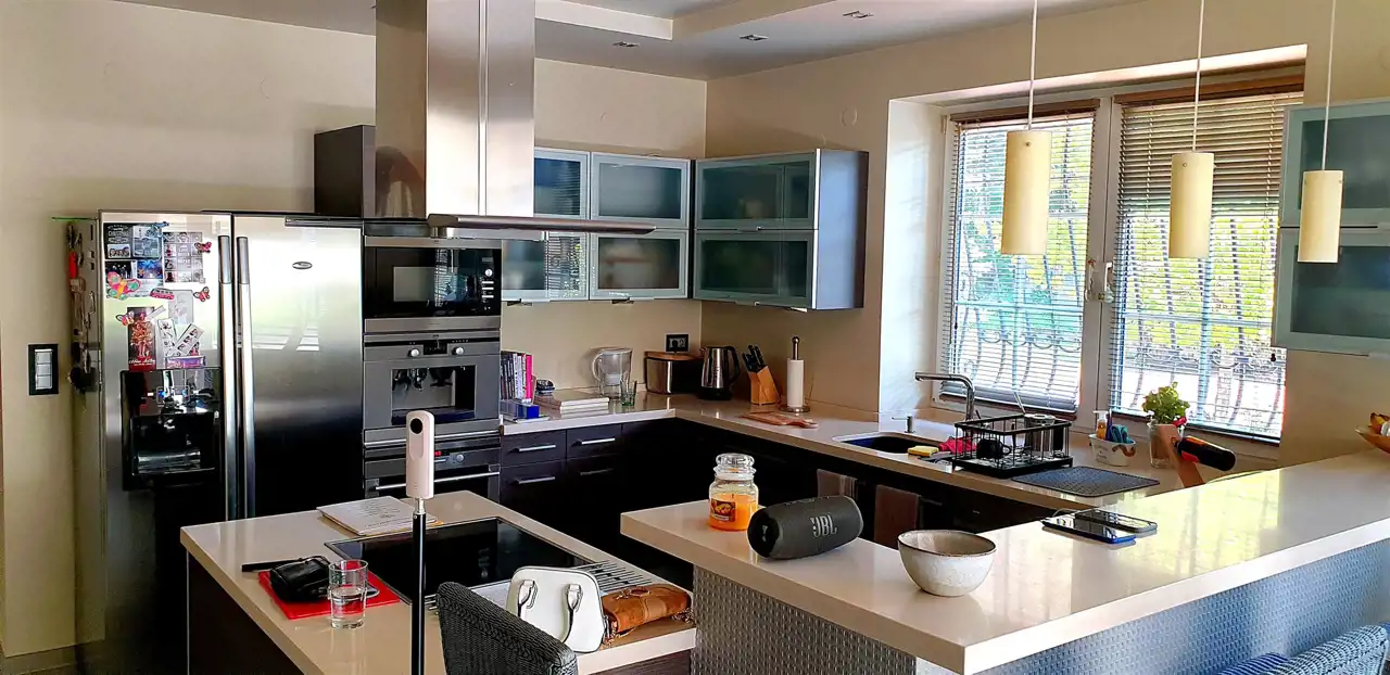Kuchnia zabudowana pod wymiar, łazienki w nowoczesnym stylu z bardzo dobrej klasy wyposażeniem.