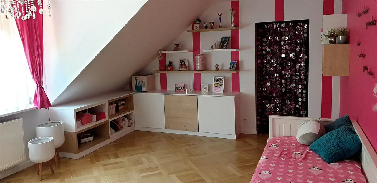 Dom jest wolnostojacy, parterowy z użytkowym poddaszem bez podpiwniczenia z garażem na 2 auta w bryle, bardzo komfortowy i reprezentacyjny, świetnie przemyślany pod względem rozkładu, idealny dla rodziny z dziećmi i wysmienity dla osób ceniących sobie komfort, przestrzeń, ciszę.