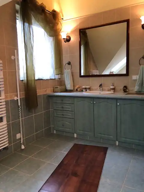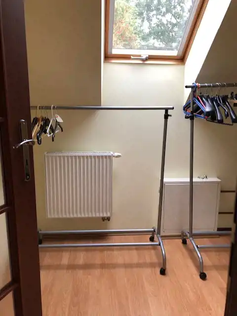 salon z aneksem kuchennym, wc, kominek z rozprowadzeniem na parter i półpiętro. Rolety zewnętrzne antywłamaniowe