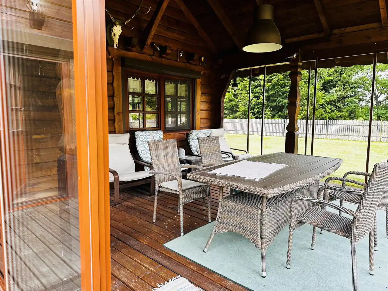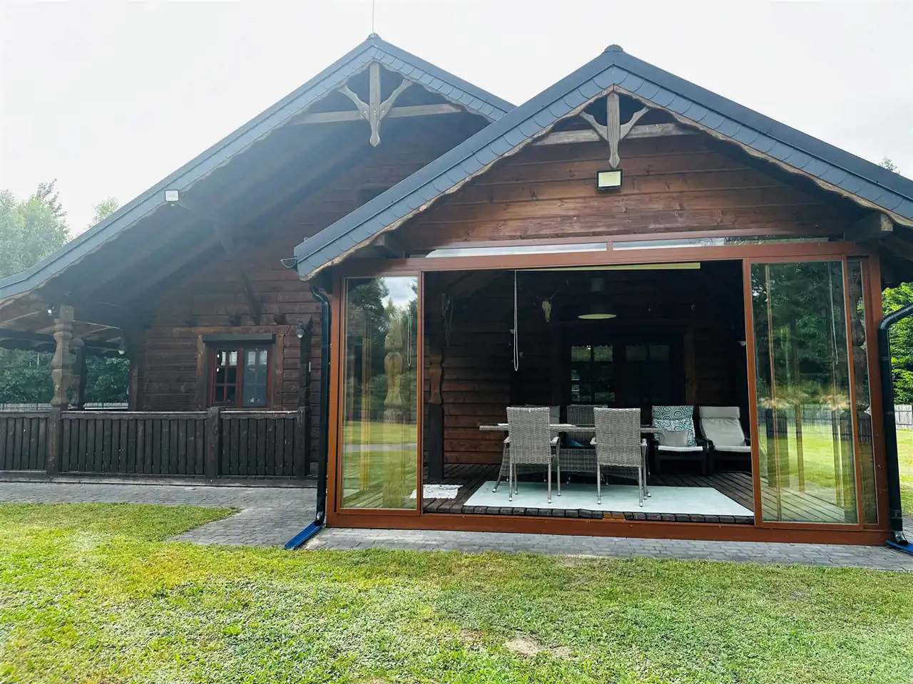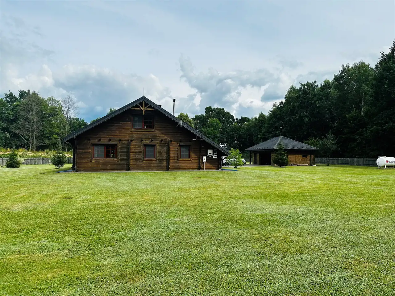 Oferujemy Państwu do sprzedaży piękną i klimatyczną posiadłość zlokalizowaną w miejscowości Osowa,7 km od Okuninki.Na nieruchomość składa się budynek mieszkalny jednorodzinny o charakterze domu myśliwskiego o pow.calkowitej 180,06mkw oraz budynek gospodarczy - garaż 2 stanowiskowy z pomieszkaniem gospodarczym i składzikiem na drewno o pow.56,29mkw.Oba budynki wybudowane w 2013r. z bali drewnianych ,kryte blachodachówką zdecydowanie nadające się do całorocznego użytku.Nieruchomość wyposażona w instalacje elektryczną ,wodociągową, gazową, odgromową , z własnym szambem oraz dodatkowym zasilaniem za pośrednictwem paneli fotowoltaicznych.Całość ogrodzona, utrzymana w bardzo dobrym stanie położona w cichym i urokliwym miejscu,w miłym sąsiedztwie doglądającym nieruchomość podczas nieobecności właściciela.