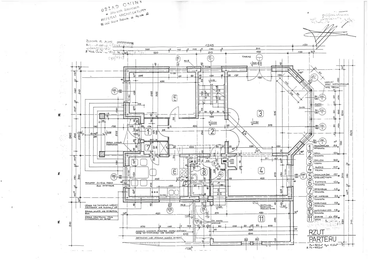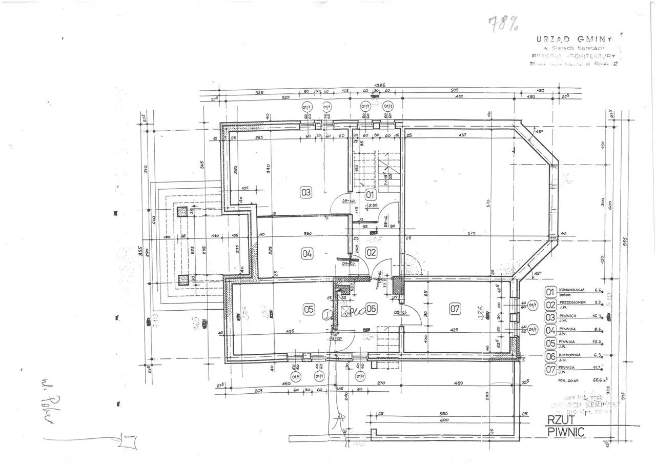 PODPIWNICZENIE powierzchnia 65 m.kw.: przedsionek, 4 pomieszczenia piwniczne, kotłownia, komunikacja.