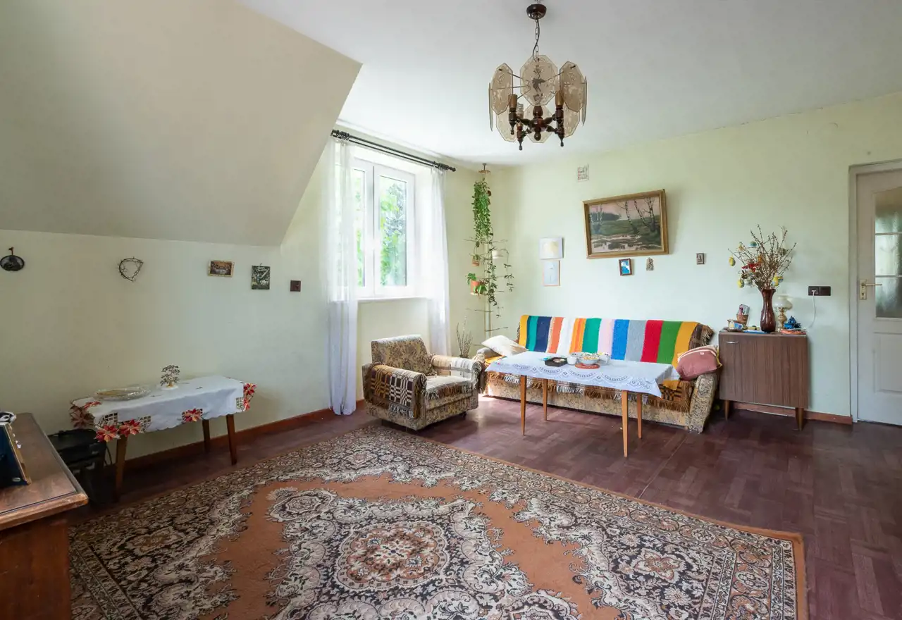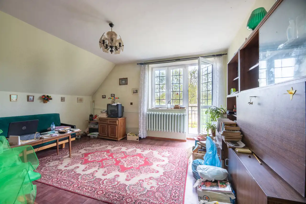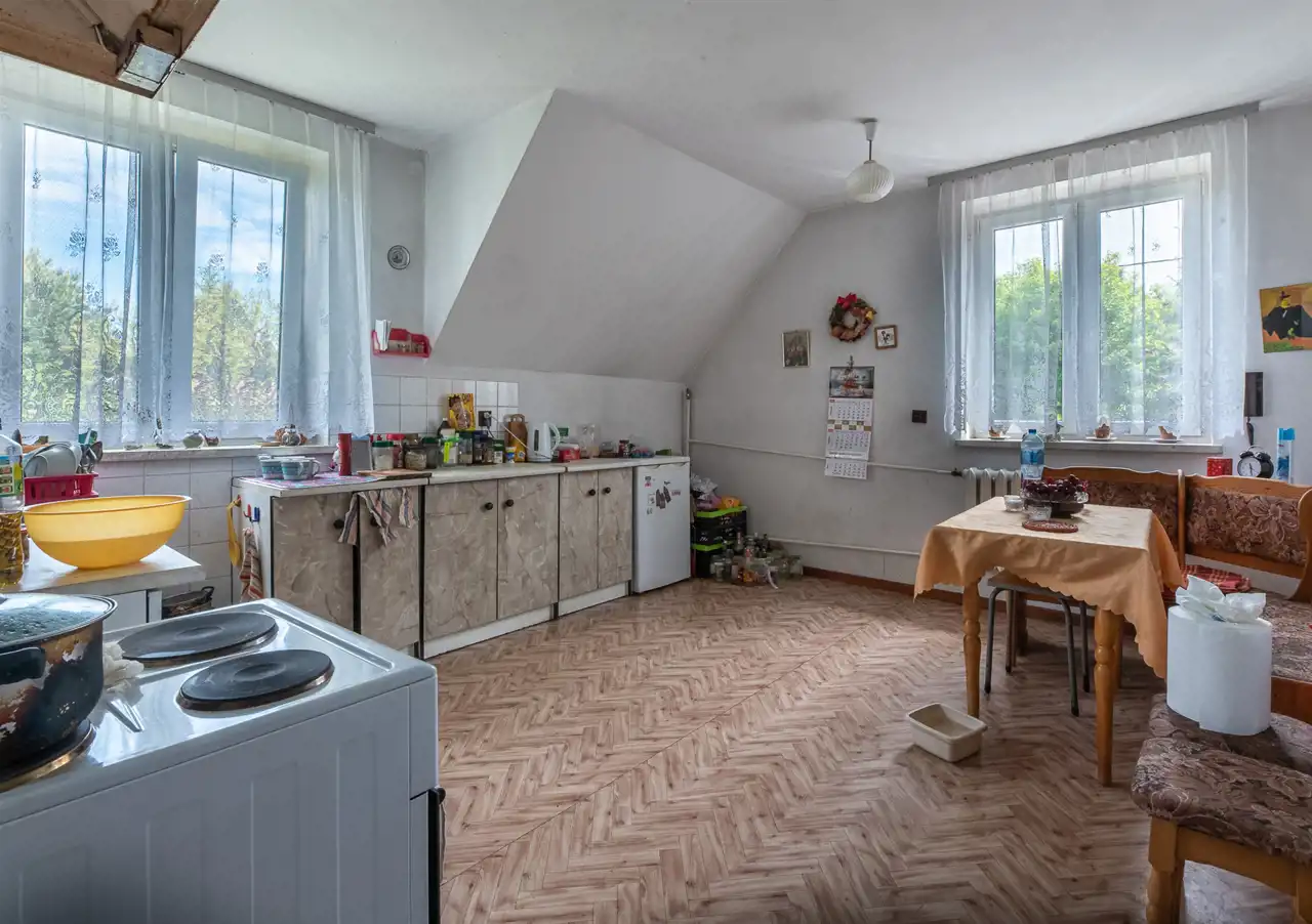 PODDASZE: trzy sypialnie, łazienka, pomieszczenie niezależne - obecnie jako kuchnia. Łączna powierzchnia użytkowa poddasza 73 m.kw. Powierzchnia po podłodze 91 m.kw.