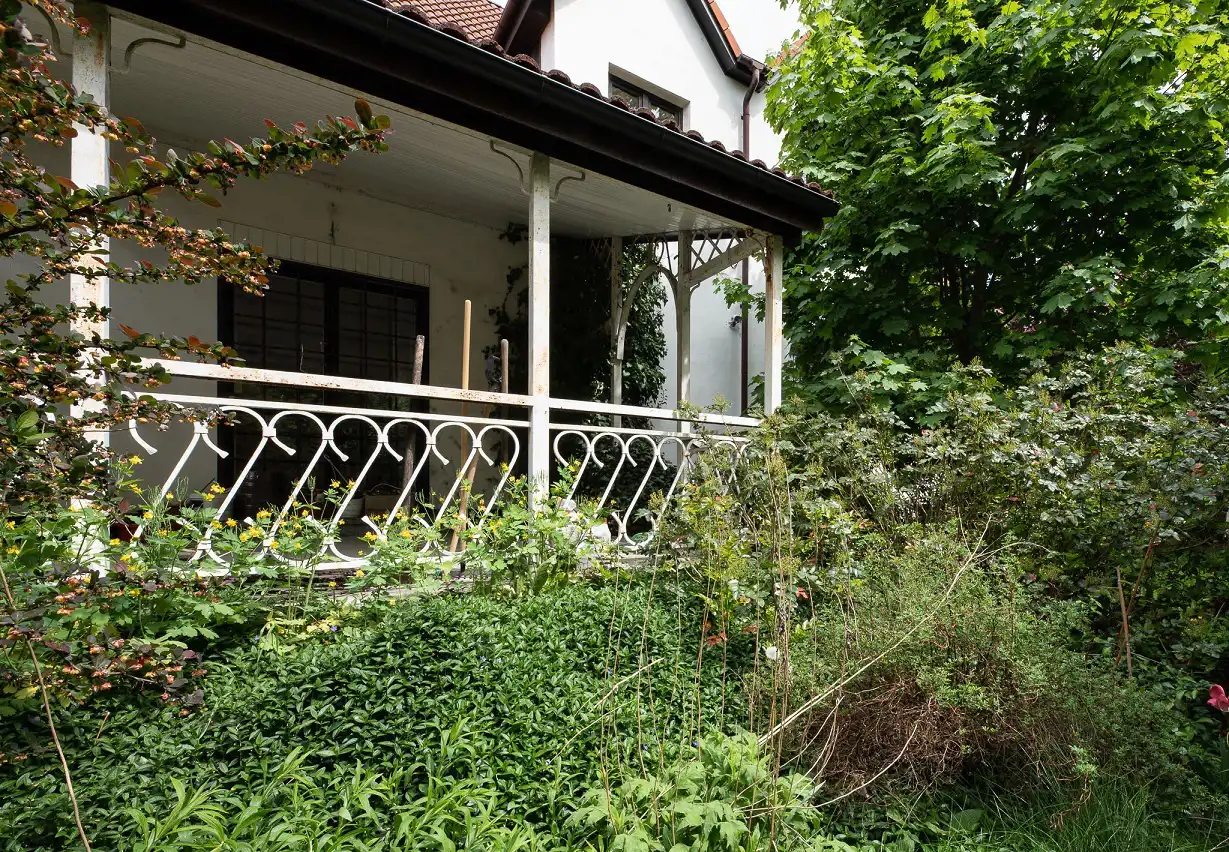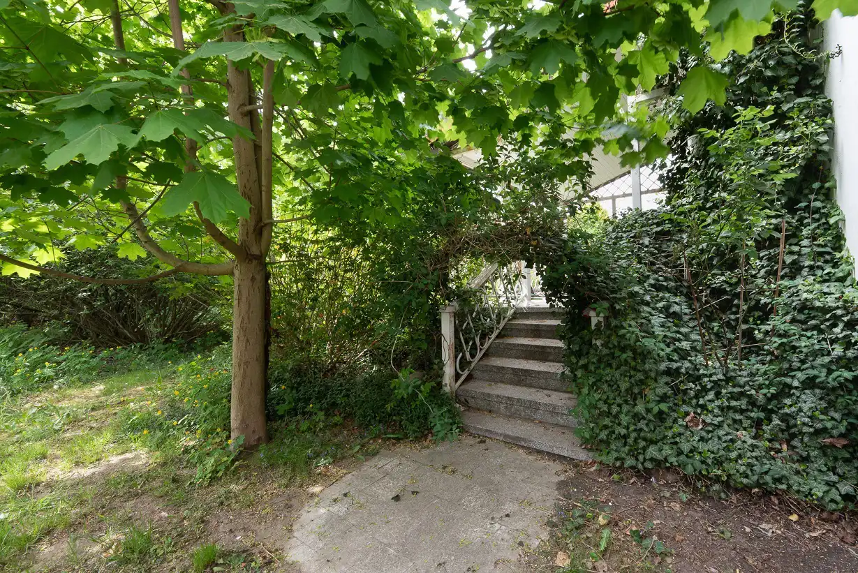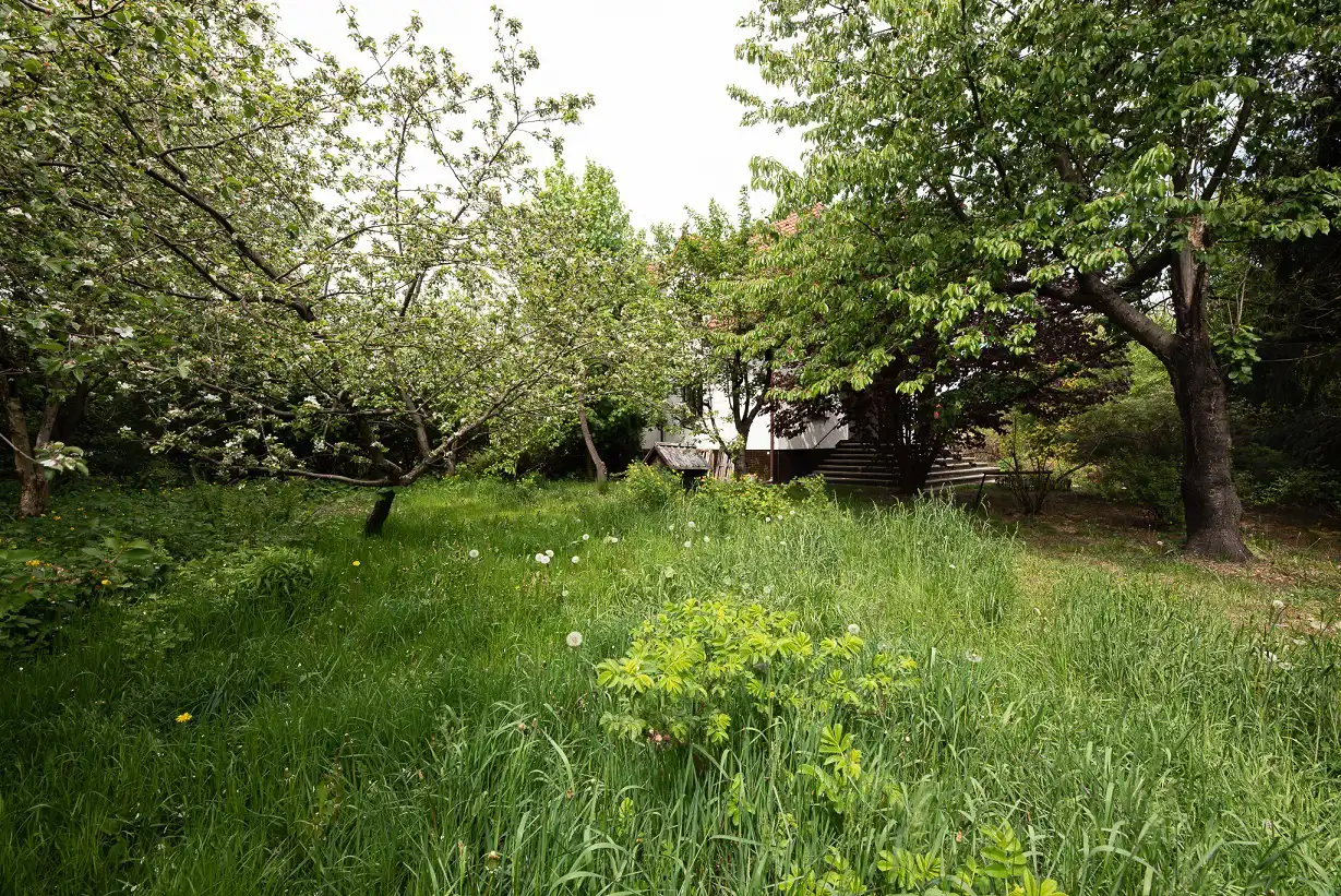 Od strony frontowej działkę zdobią krzewy ozdobne i drzewka owocowe. Od tyłu budynku wykorzystywana jest jako ogródek przydomowy.