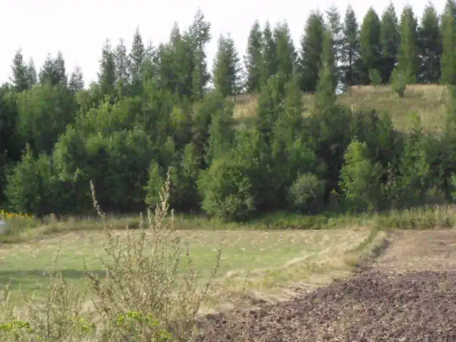 Możliwość dokupienia większego terenu z tyłu działki porośniętego lasem modrzewiowym.