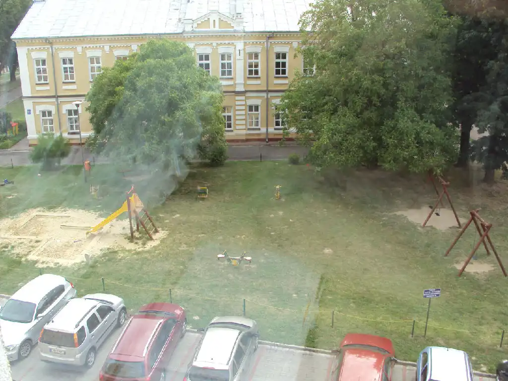 - З вікон квартири вид на автостоянку і дитячий майданчик,