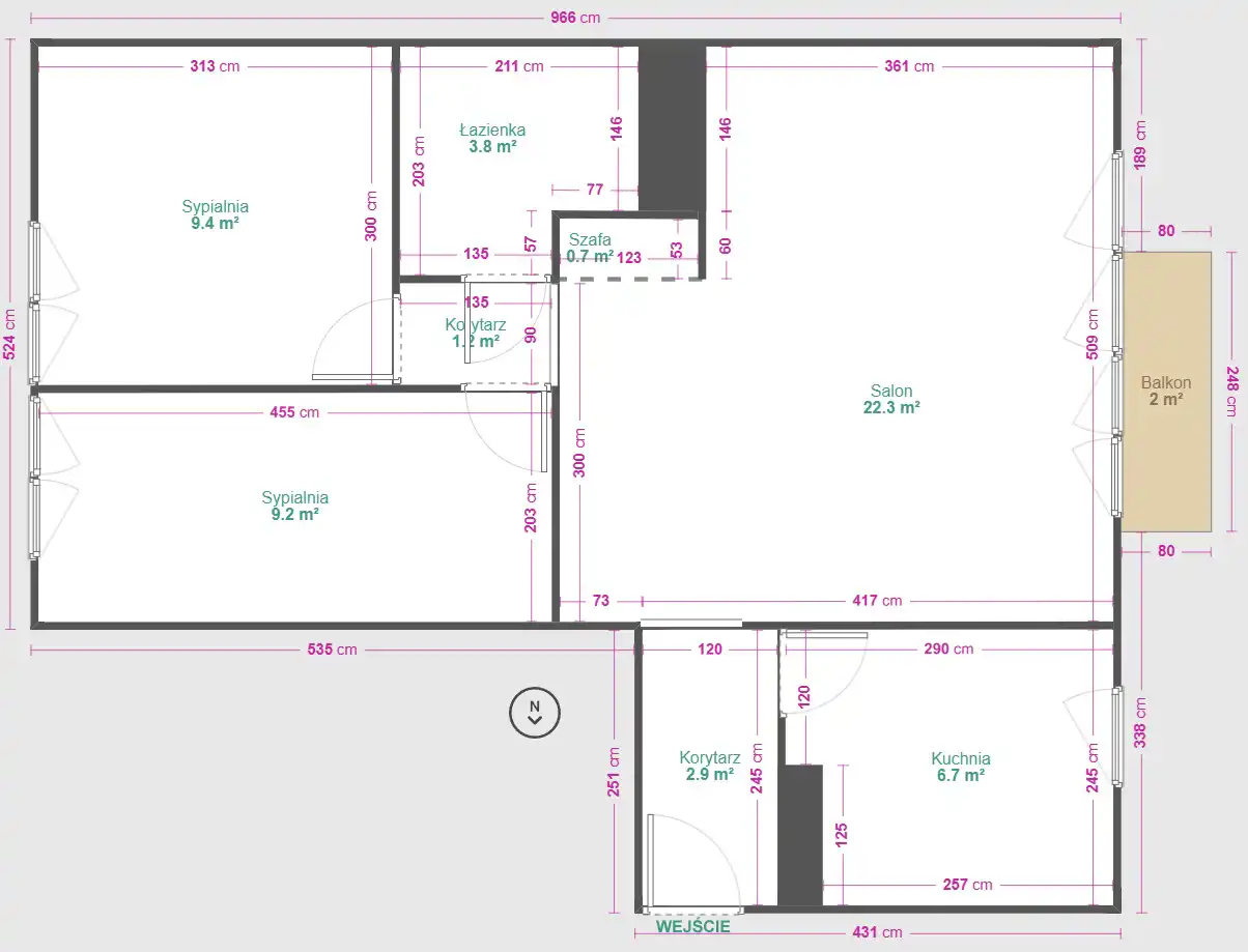 - Charakterystyka mieszkania 57.32 m2, 3 pokoje