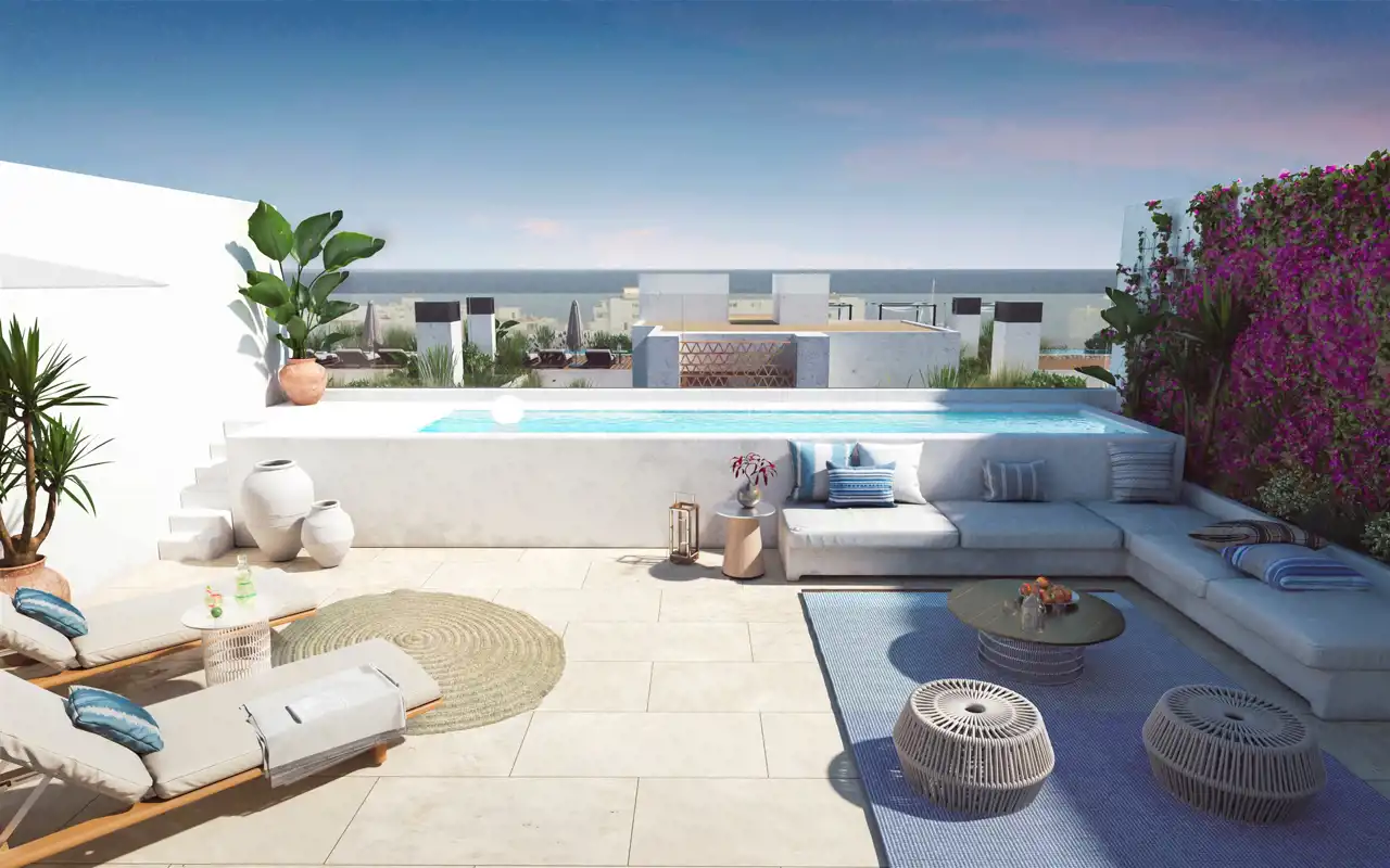 Zostało 15 apartamentów !!!! Nowy projekt mieszkaniowy na bajecznej wyspie Ibiza. Składający się z 57 apartamentów z 1 do 3 sypialniami z prywatnymi tarasami, częściami wspólnymi takimi jak: plac zabaw dla dzieci, siłownią i tarasem na dachu budynku z basenami typu „infiniti” i strefą „chill out”, z której można cieszyć się najlepszymi widokami na morze i okolicę. Plaża Santa Eulalia, położona zaledwie 5 minut spacerem!! Budynek z dwiema fasadami w różnych stylach: pierwsza, morska,inspirowana wiejskim hiszpańskim domem, na którym znajduje się ciąg tarasów z roślinnością śródziemnomorską i ekologicznym systemem nawadniającym. W tym wychodzącym na południe budynku znajdują się apartamenty z 2 i 3 sypialniami. Drugi budynek z widokiem na góry i morze z 1 lub 2, 3 sypialniami, 3 penthouse'y z 3 sypialniami i prywatnymi basenami. Materiały są doskonałej jakości dostosowane do klimatu morskiego. Biel Ibizy wyraża się w otwartych kuchniach, na podłogach i ścianach. Łazienki dostarczane są w komplecie z nowoczesnym i funkcjonalnym designem. Kuchnie z meblami i sprzętem AGD na wymiar marek Bosch lub Balay. Klimatyzacja z opcjami ciepło i zimno. Oświetlenie typu LED, wykończone podłogi.
