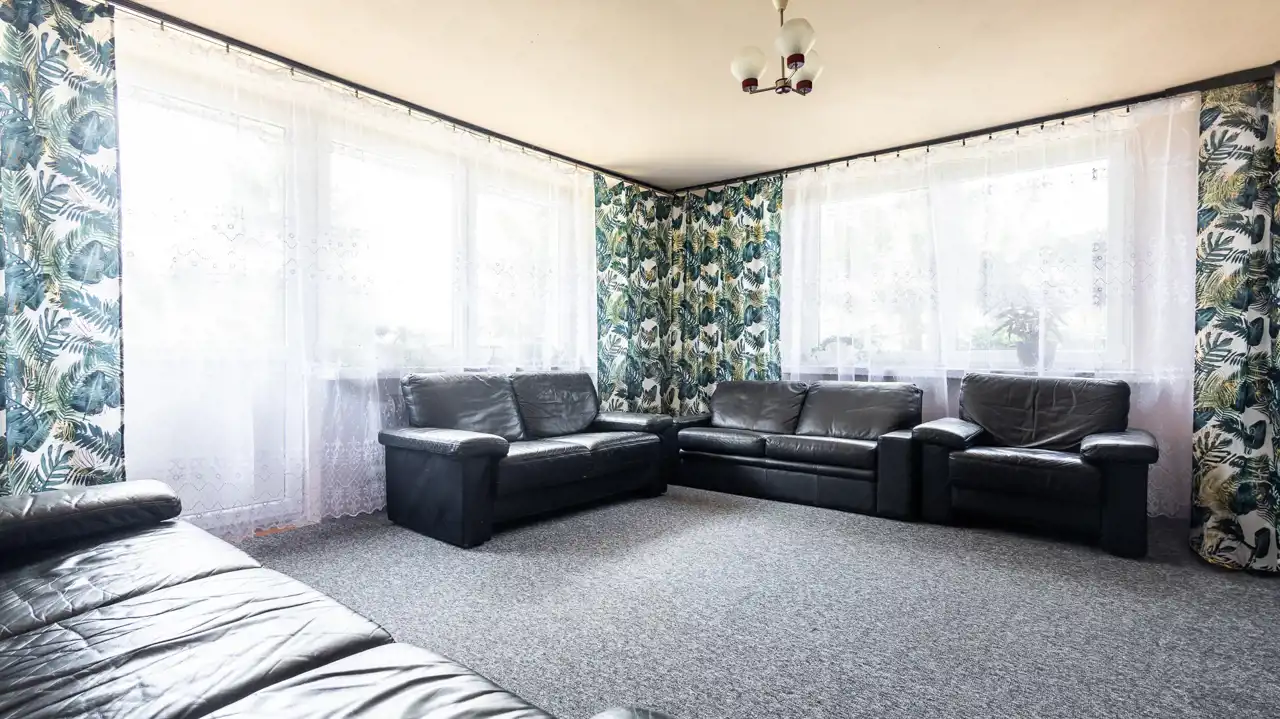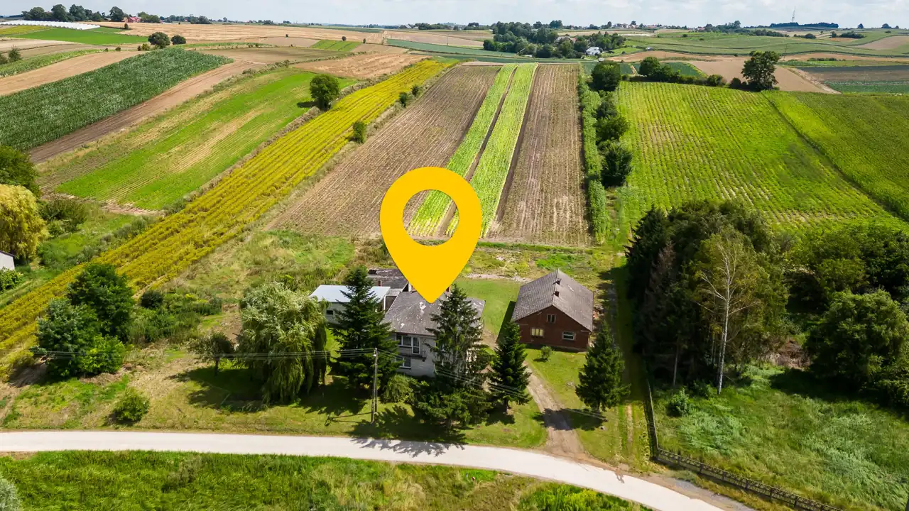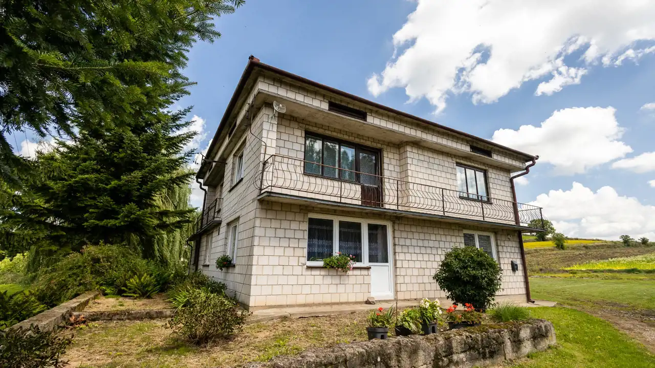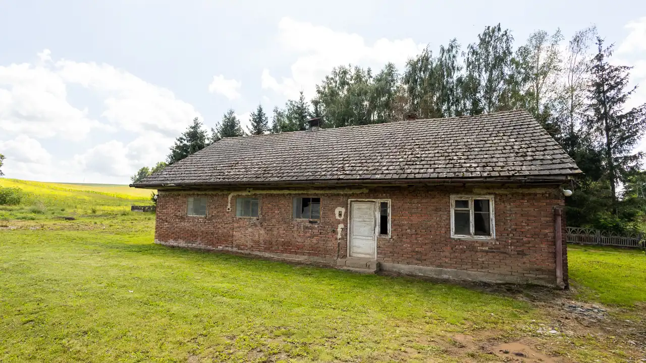 Dom wolnostojący, 2-kondygnacyjna z lat 90-tych XX w., o pow. całkowitej 222,79 m2, z garażem w bryle budynku oraz obok, stary dom z cegły o pow. ok. 110 m2, posadowiony na działce o pow. 0,46 ha, z bezpośrednim dostępem do drogi publicznej.