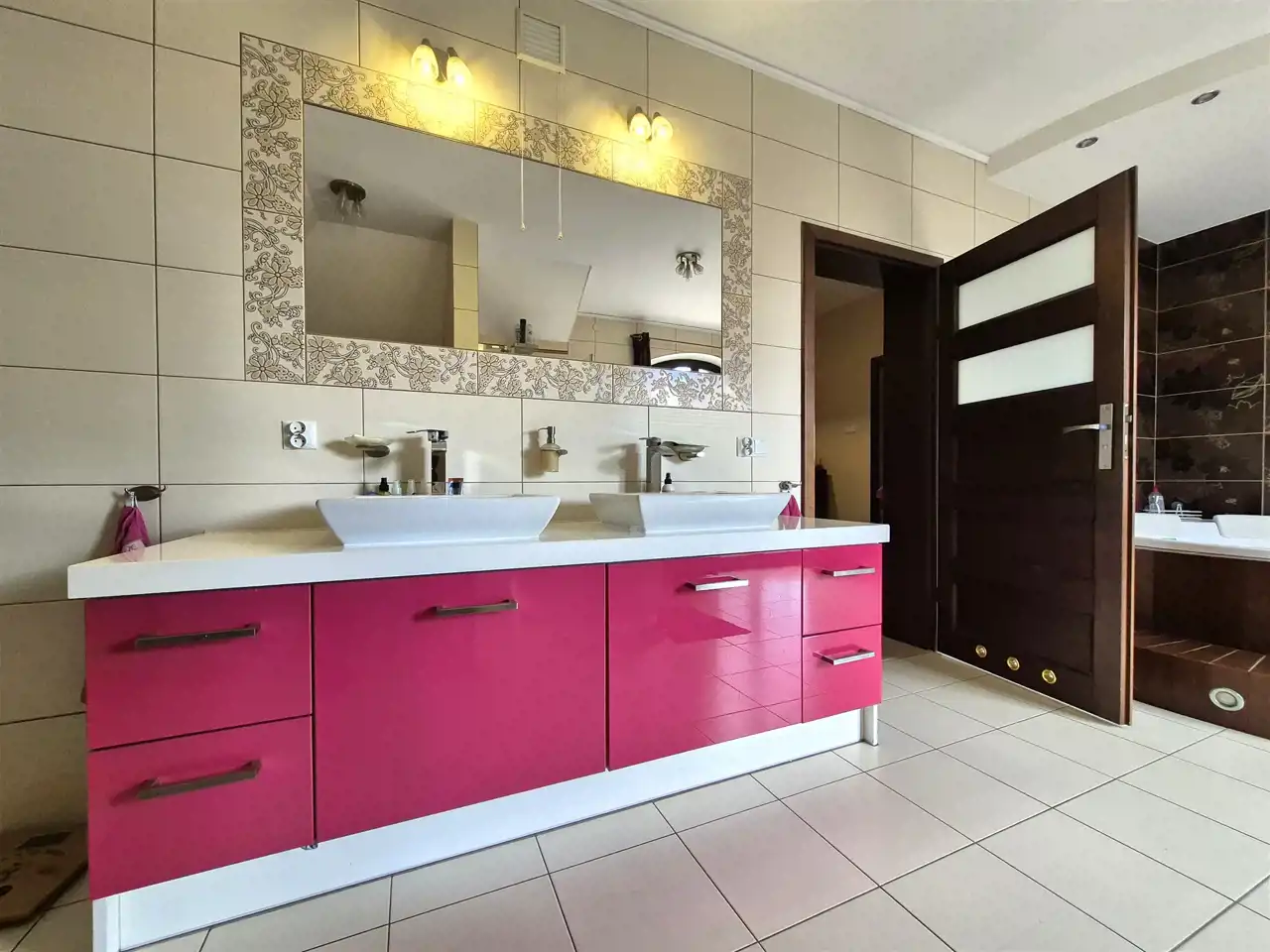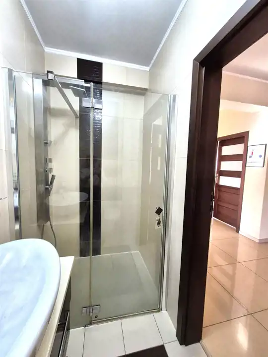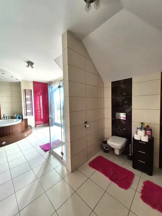 - pokój kąpielowy - duża wanna z oraz kabina prysznicowa, WC, dwie umywalki,