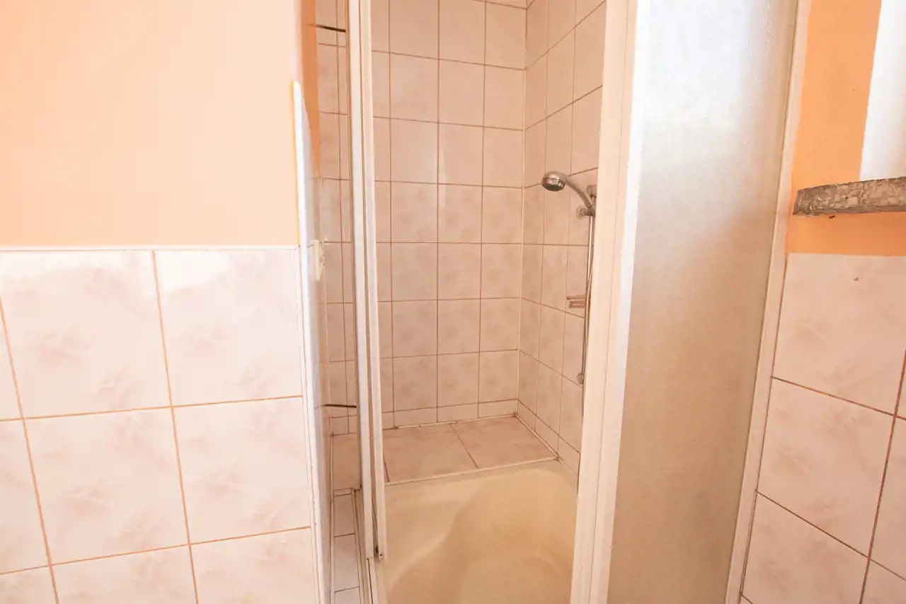 - Łazienka 2: prysznic, toaleta, zlew, miejsce na pralkę.