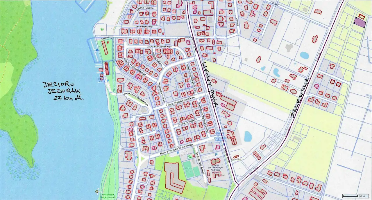 - Blisko drogi asfaltowej. Z nowym wjazdem z ul. Zalewskiej.