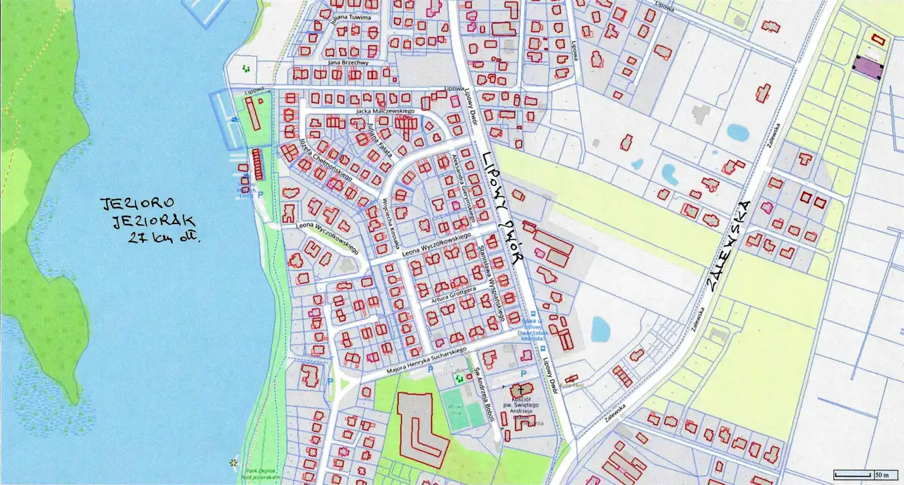 - Blisko drogi asfaltowej. Z nowym wjazdem z ul. Zalewskiej.