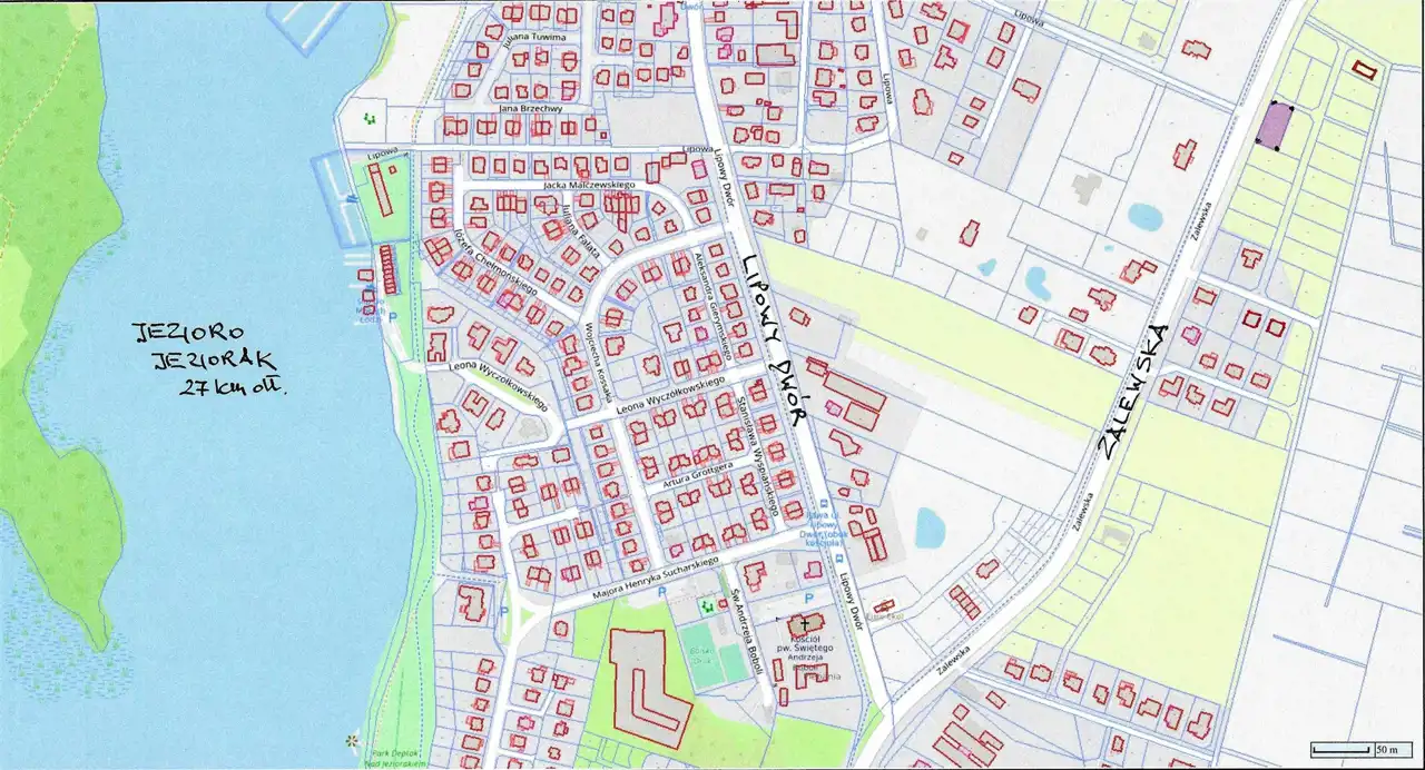 - Blisko drogi asfaltowej. Z nowym wjazdem z ul. Zalewskiej.