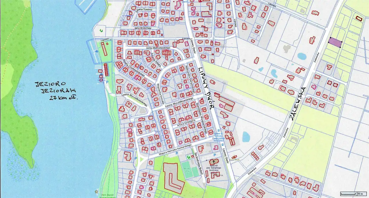 - Blisko drogi asfaltowej. Z nowym wjazdem z ul. Zalewskiej.