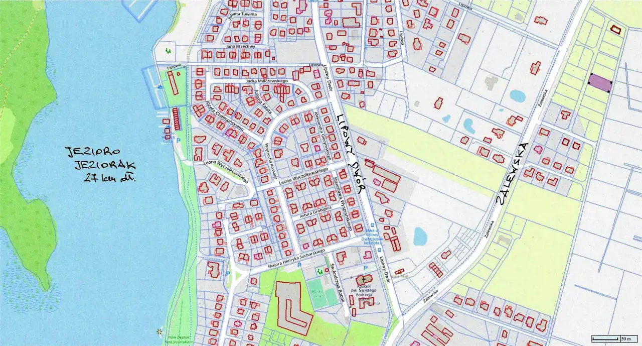 - Blisko drogi asfaltowej. Z nowym wjazdem z ul. Zalewskiej.