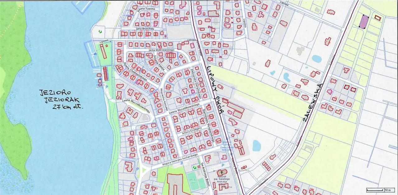 - Blisko drogi asfaltowej. Z nowym wjazdem z ul. Zalewskiej.