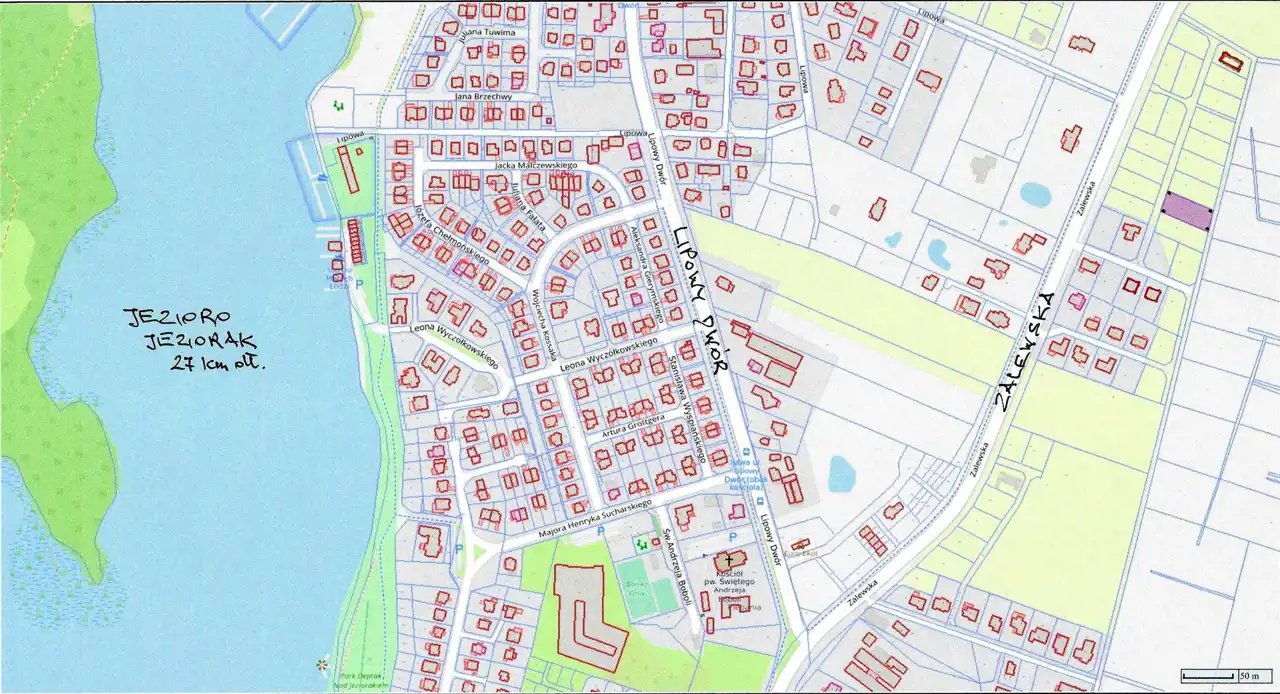 - Blisko drogi asfaltowej. Z nowym wjazdem z ul. Zalewskiej.