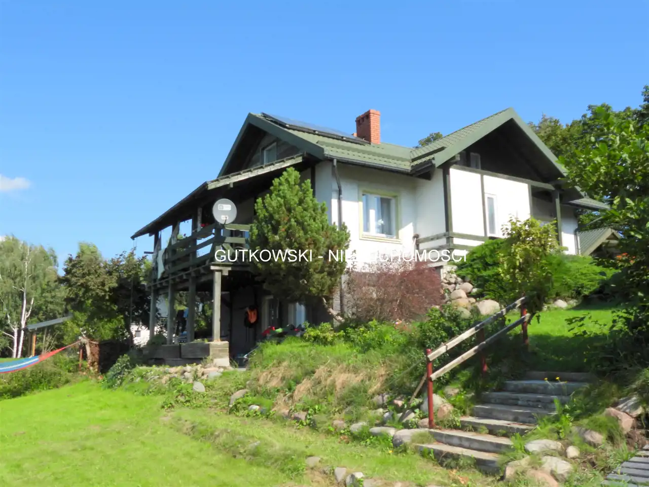 - Parterowy z poddaszem użytkowym. 5-pokojowy, z zabudowaną "na miarę" kuchnią (w cenie), 2 łazienkami, 2 WC. Z dużym drewnianym balkonem oraz zadaszonym drewnianym tarasem od strony jeziora.