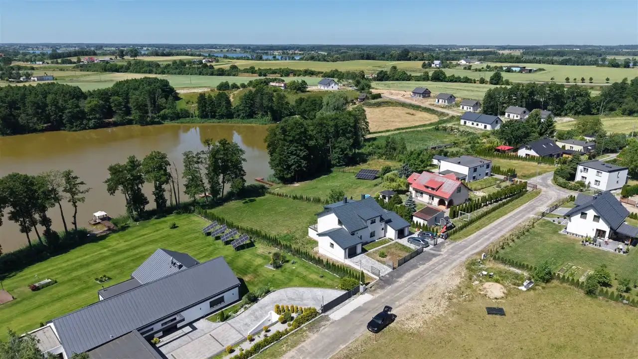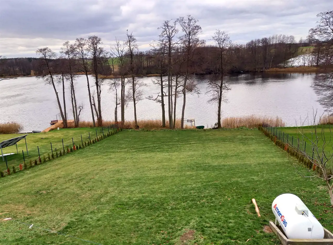 Działka o powierzchni 2138 m2 nachylona w kierunku jeziora - powierzchnia lustra wody 8,18 ha.