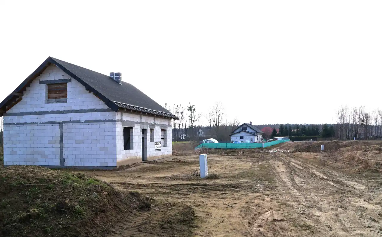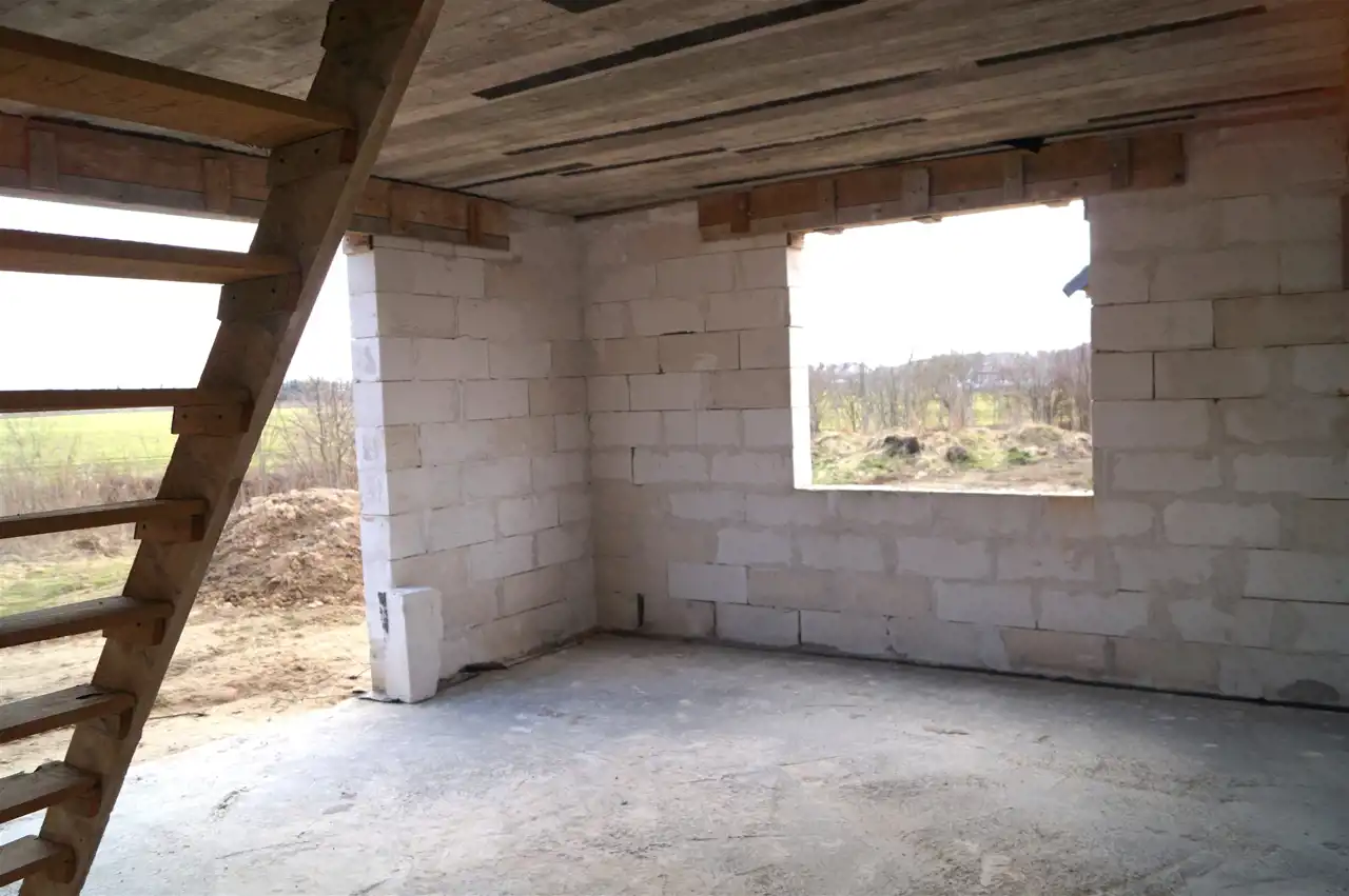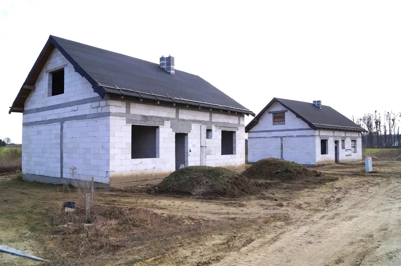 Dom wolnostojący w stanie surowym otwartym na działce o powierzchni 1371 m2. Nieruchomość znajduje się na nowym osiedlu domków jednorodzinnych w ciągłej rozbudowie.