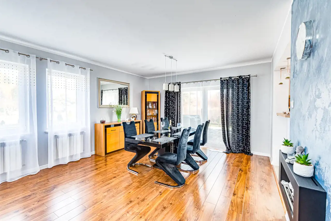 Całości dopełnia wyjątkowy klimat, który sprawia, że każdy zakątek tego domu staje się idealnym miejscem do życia. To miejsce, w którym komfort spotyka się z elegancją, a przestronność z przytulnością.