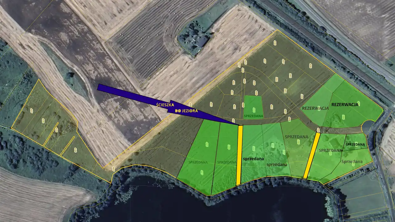 Dostęp do linii brzegowej jeziora: część działek bezpośrednio graniczy z jeziorem a część posiada wspólną linię brzegową co daje niepowtarzalną możliwość cieszenia się urokami wodnej scenerii.