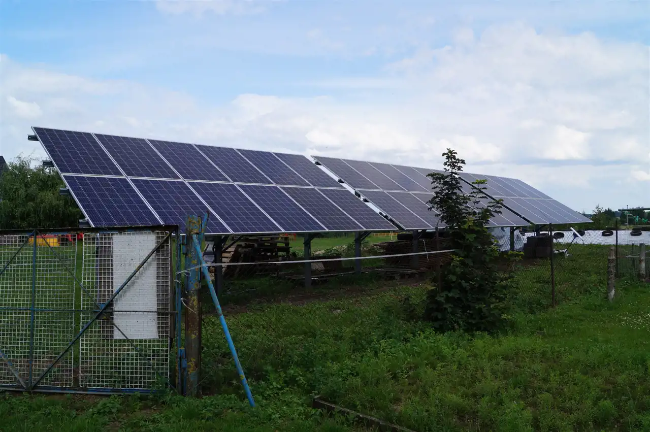 Obok na stelażu znajduje się mała ferma fotowoltaiczna o mocy 10 KW działająca piąty rok.